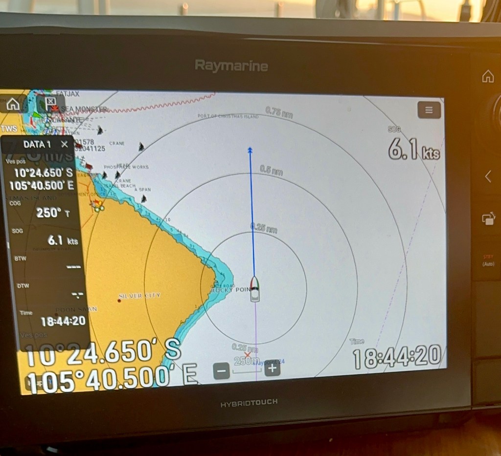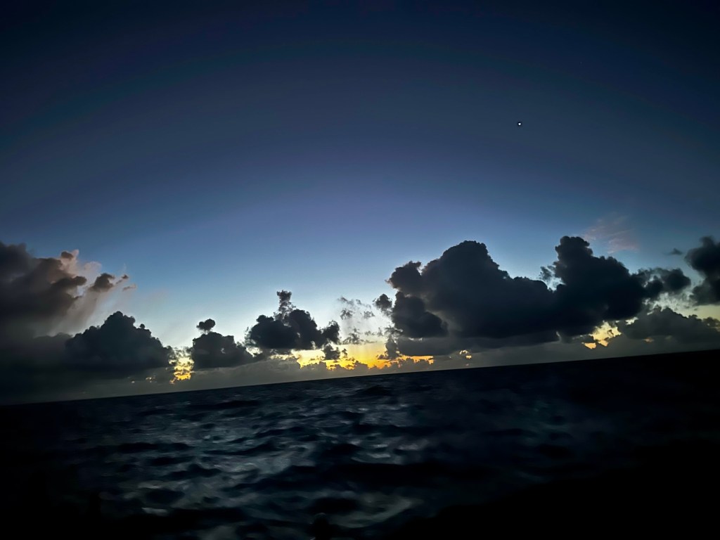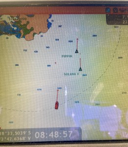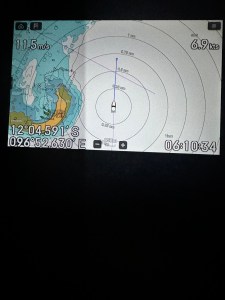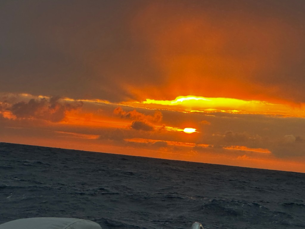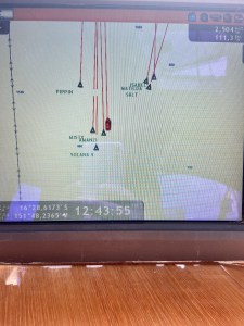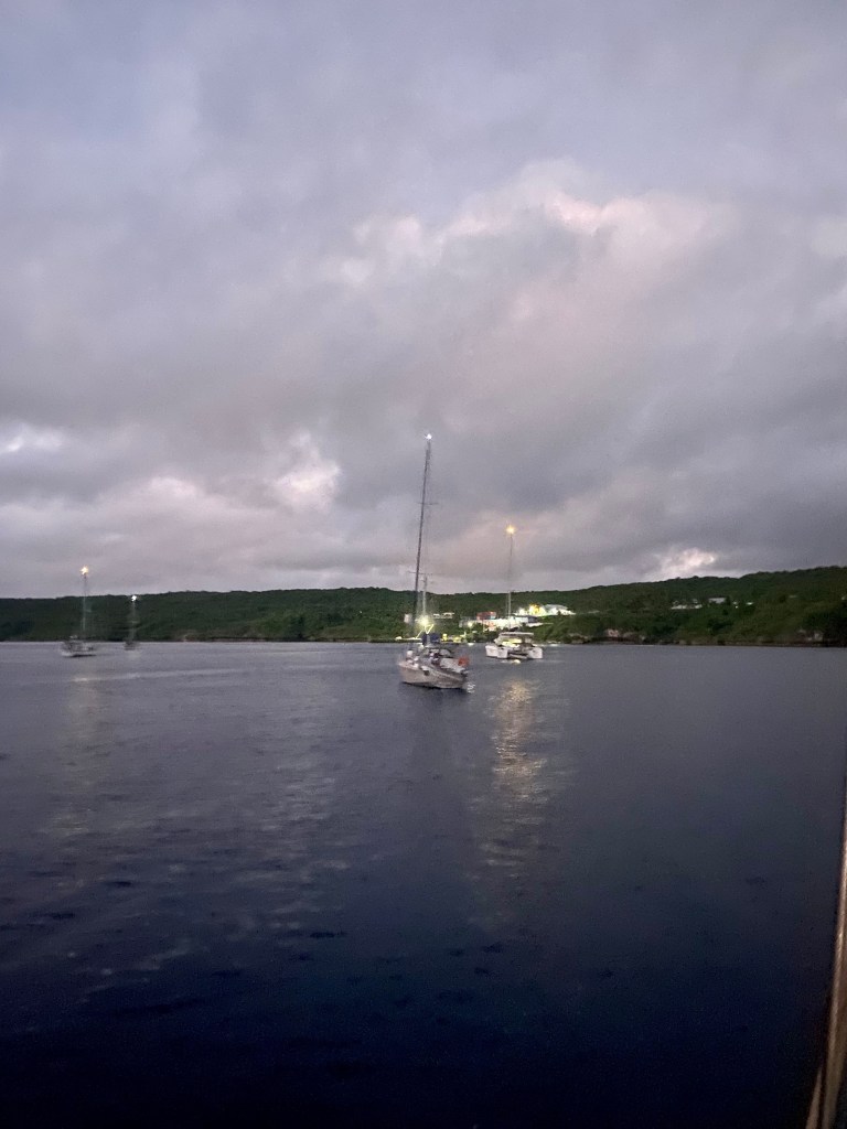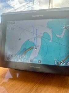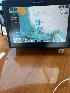 I woke up shortly before 4, and we turned on the radar as it looked like a squall was coming. We avoided the rain, though the boat could use a wash to get rid of all the salt. You can’t touch anything on the boat without getting a thick layer of salt.