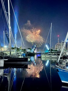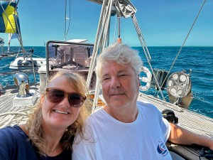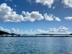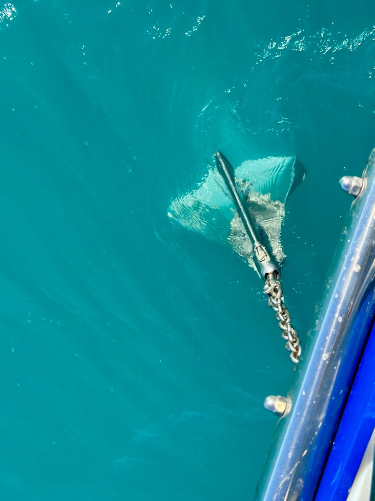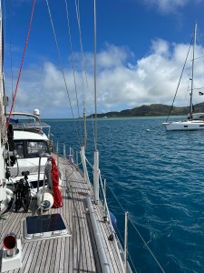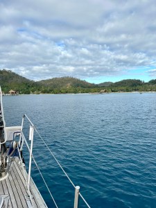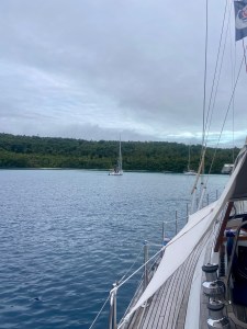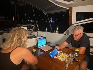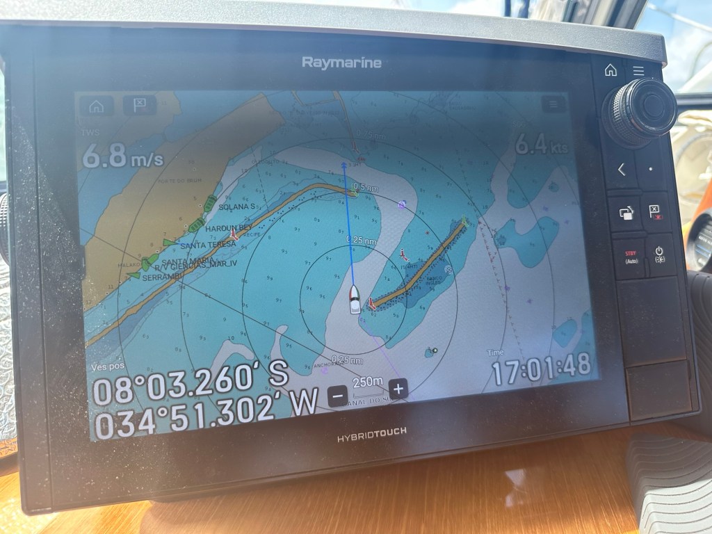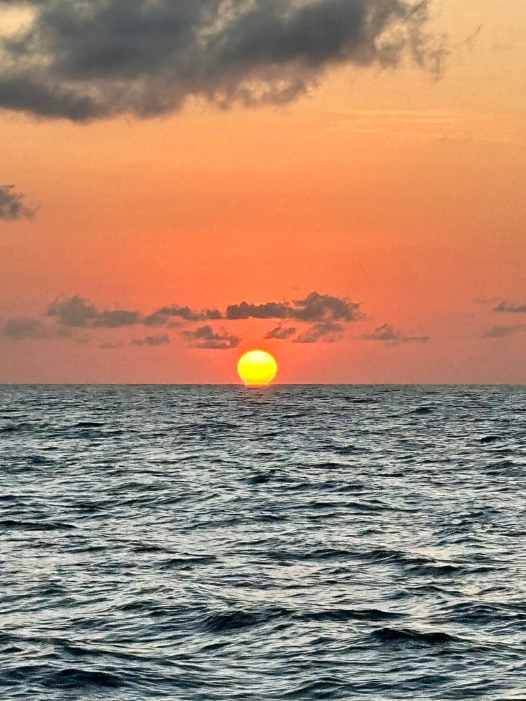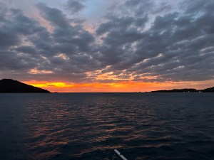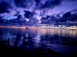 I woke up shortly before 4, and we turned on the radar as it looked like a squall was coming. We avoided the rain, though the boat could use a wash to get rid of all the salt. You can’t touch anything on the boat without getting a thick layer of salt.