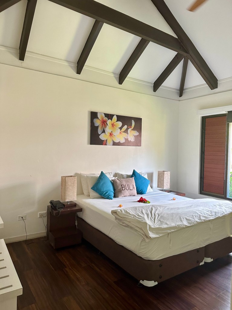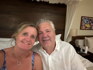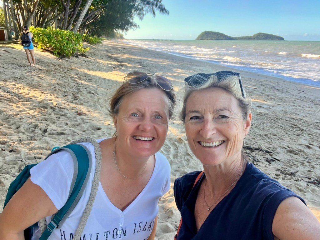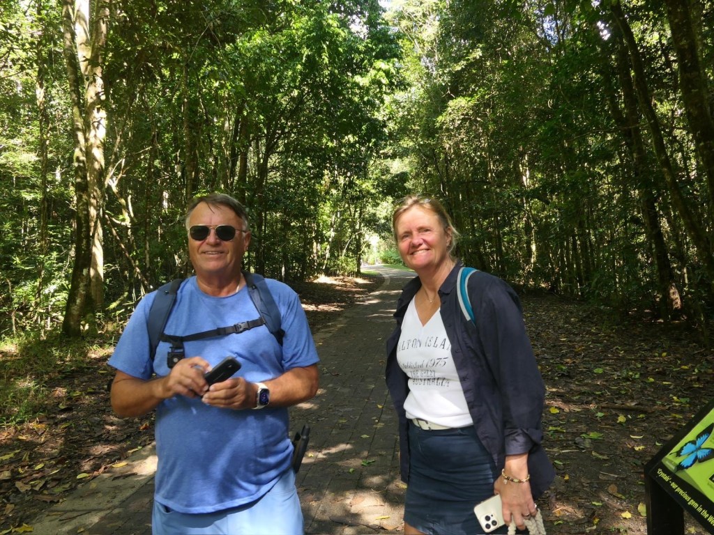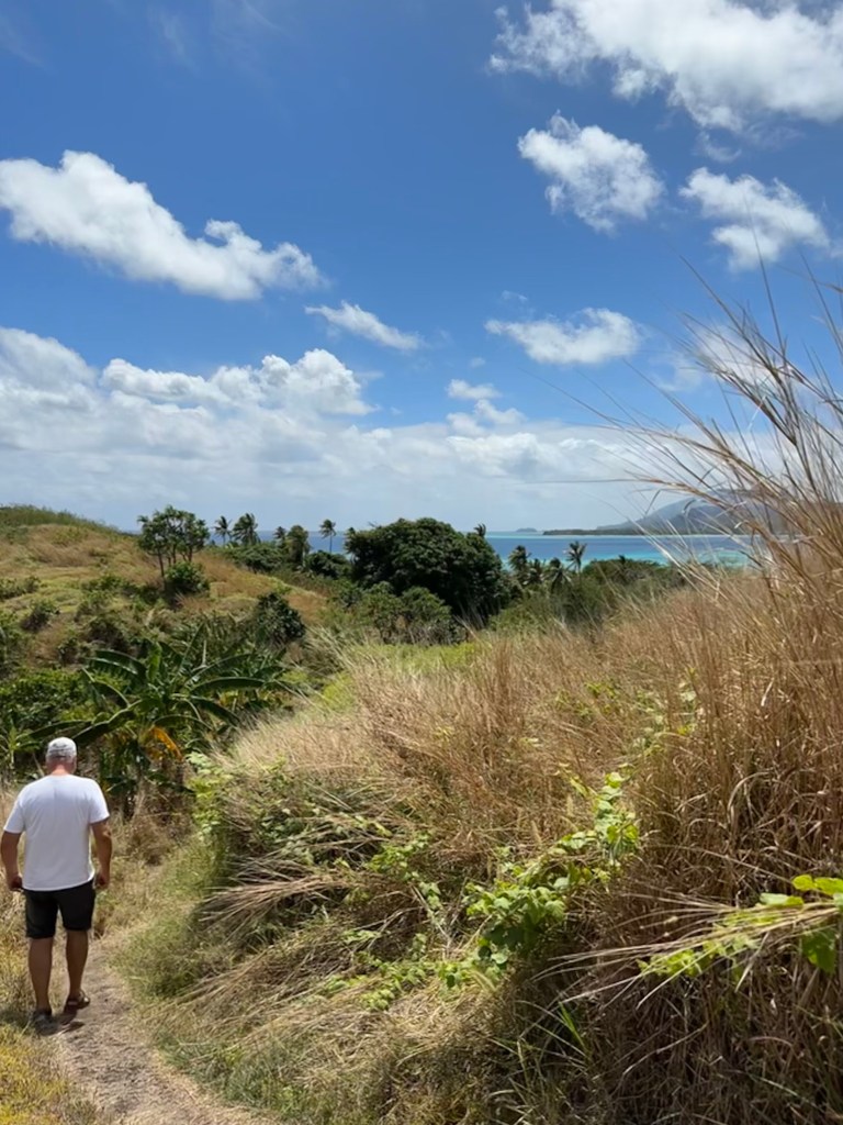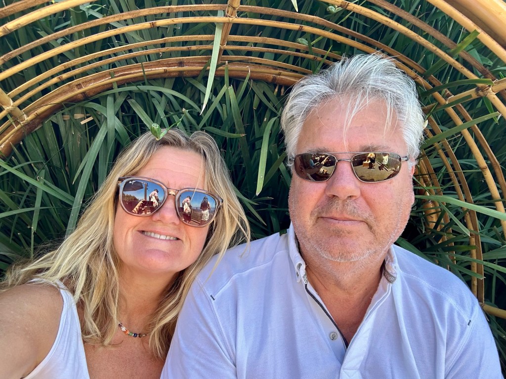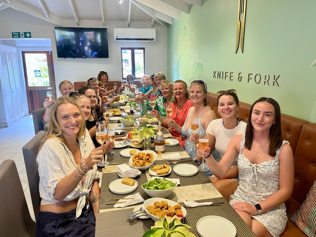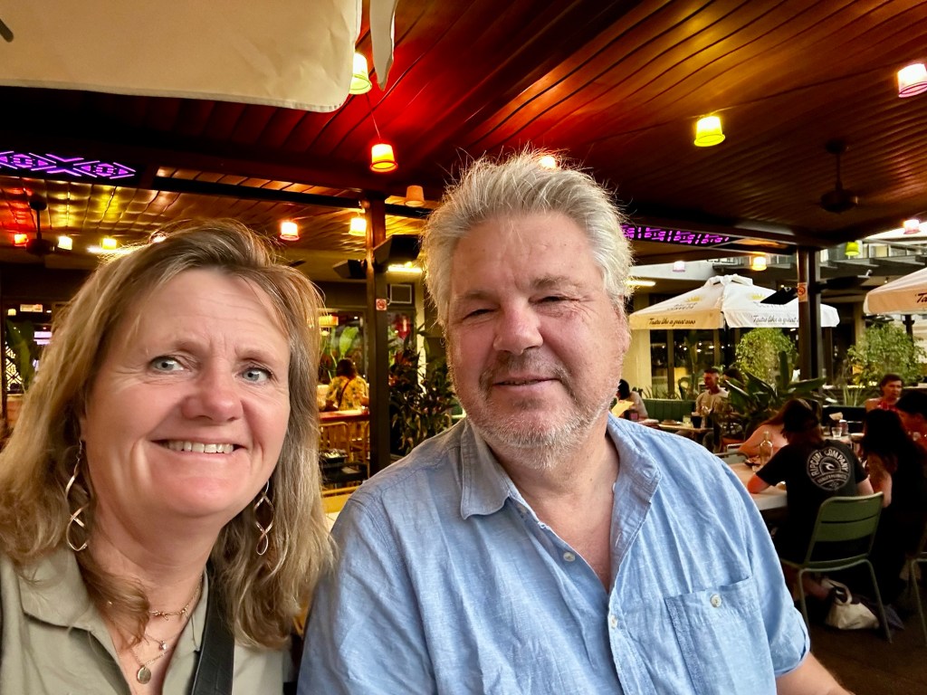 The gangway is put up, and the dinghy is hoisted. We detached the engine yesterday. Just after eleven, the marina staff comes to help us get away from the pilings, and we wave goodbye to Sien and Martin. Before we leave, we fill up with 140 liters of diesel, so now we have a full tank. We also prepare with seasickness patches, which I’m glad we did because as soon as we rounded Antigua, it started rolling, and we lean to port all the time. We’re not good at managing food; neither of us feels like being in the kitchen and cooking, not even going downstairs, so it’s crackers, pastries, and fruit.