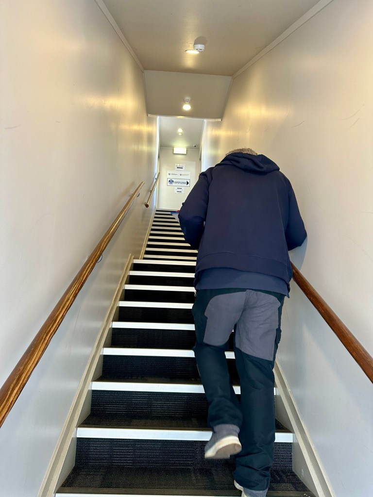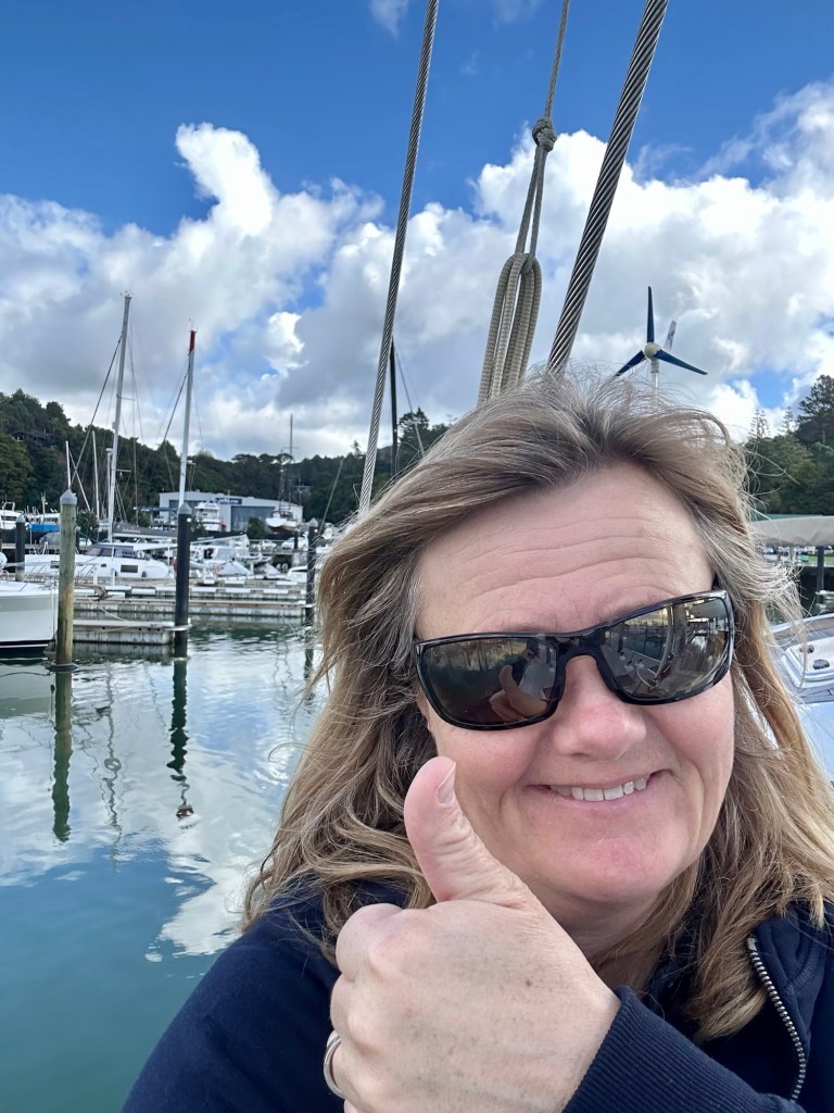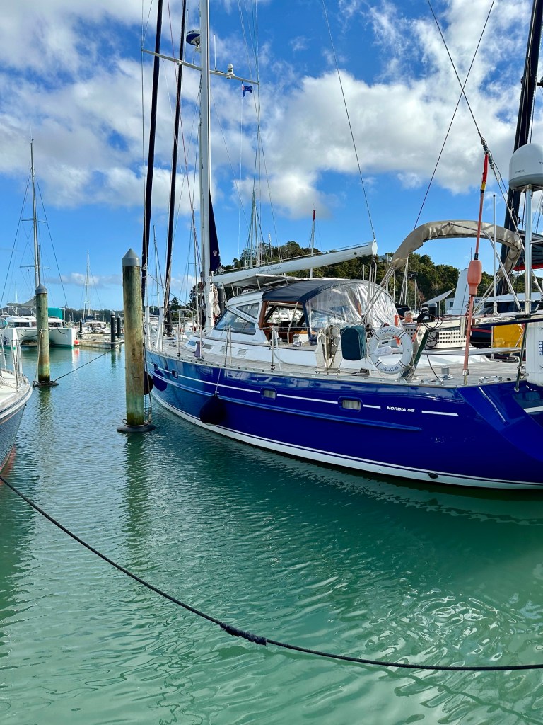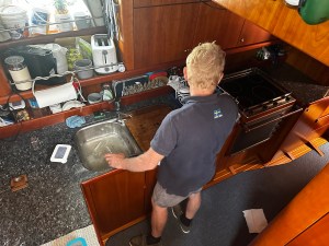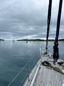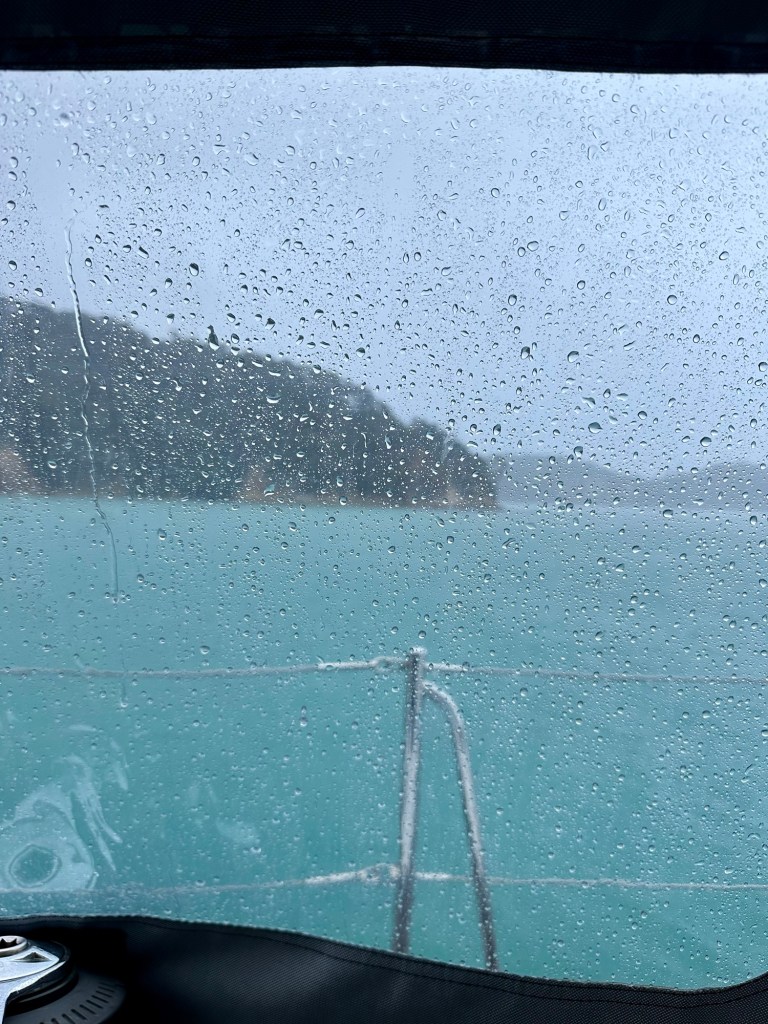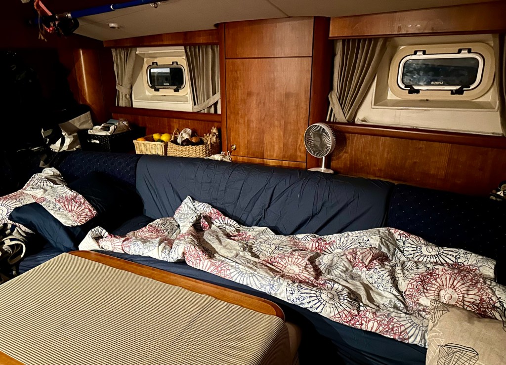 Day 3. I got a few hours of sleep from around midnight to 3:30 when it was Edgar’s turn. He went down to sleep on the couch until about 6. It was so nice to sleep in a bed. What a difference. Unfortunately, some water came in through the saloon window, but that’s nothing compared to how wet it was in the toilet in the bow. The rug was soaking wet, and there was a lot of water by the windows. Just had to clean it up and put towels in the windows.