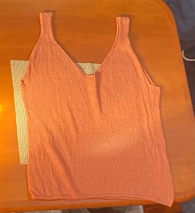 I unraveled my blue top to the division of the front and back piece because the armholes turned out very differently. I finished one side, so tomorrow I’ll tackle the other. I’m thinking of starting to knit clothes for my grandchildren’s Barbie dolls. I’m also tempted to make something for Novalie with the pink mottled yarn.