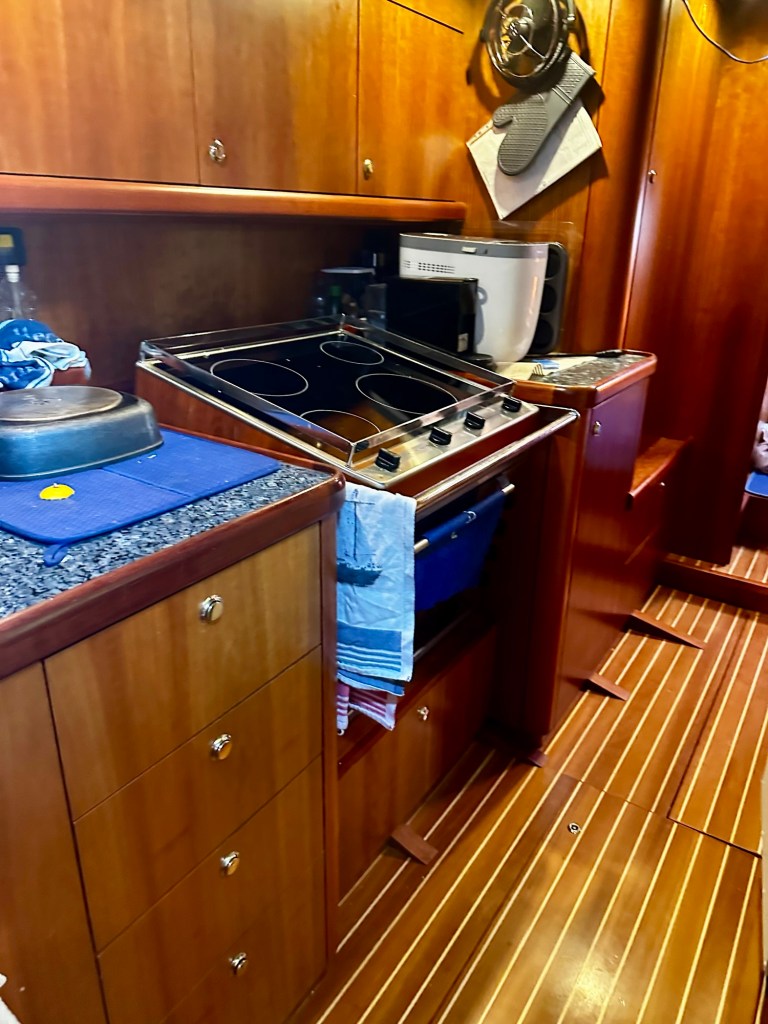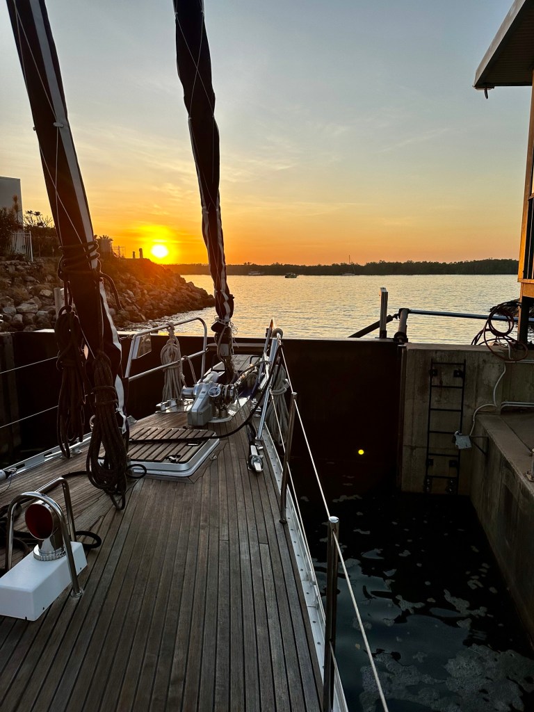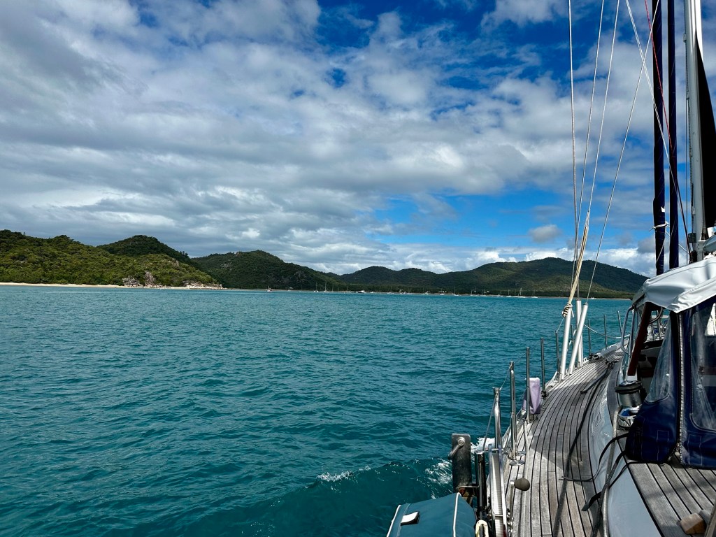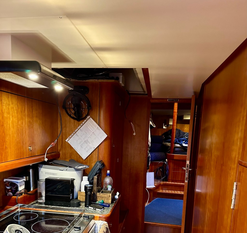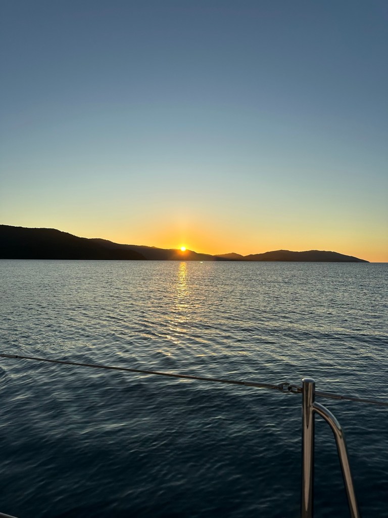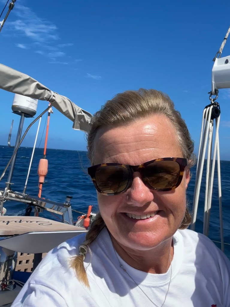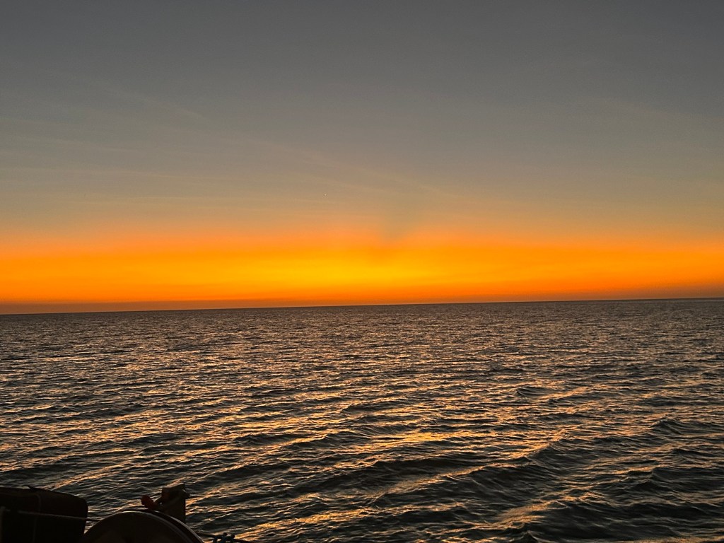 Day 7. I crawl down into the saloon sofa and use a blanket for the first time since we packed them away in Australia. I woke up to Edgar talking to a vessel that didn’t have functioning lights. I fell back asleep and was woken up at 4:30. It’s still moonlit. We’re finally steering more towards the Azores, only 20 degrees off compared to 40 degrees before. At the moment of writing, 1390 nautical miles left. A good distance to go. I watch a movie during my watch, listen to podcasts and audiobooks, and knit. Not all at the same time, of course. It’s pleasant sailing, making between 4 and 6 knots depending on the wind.