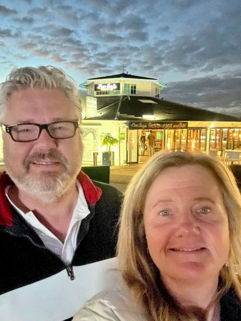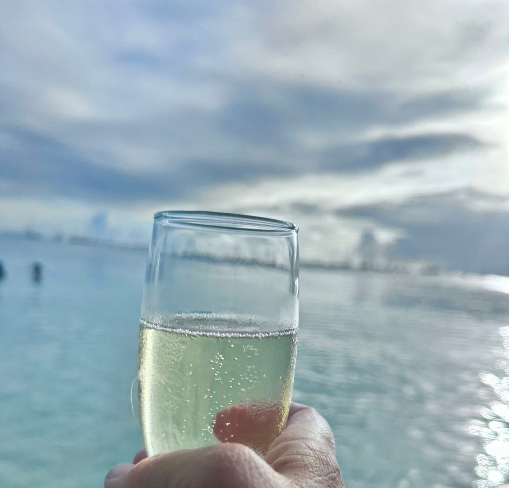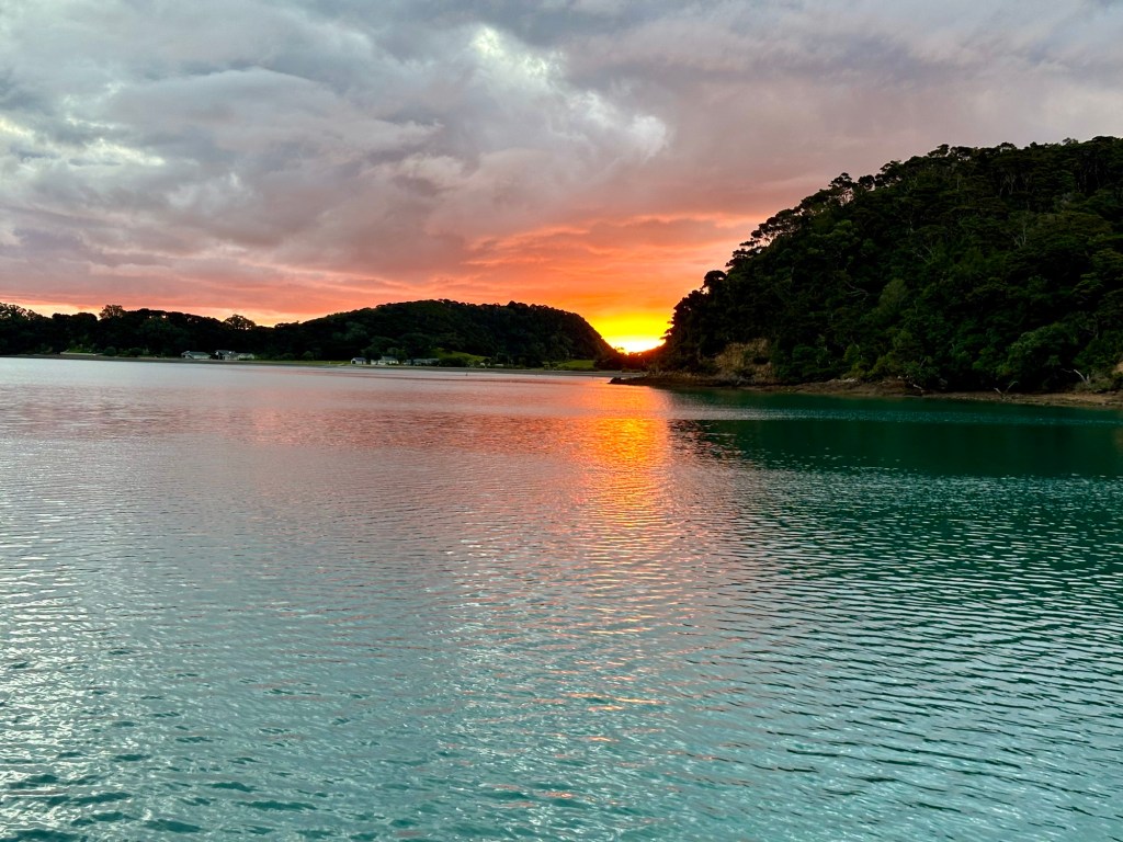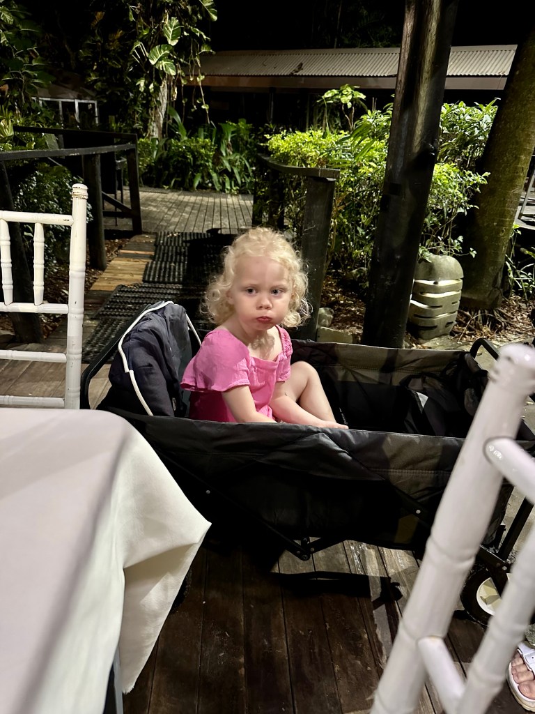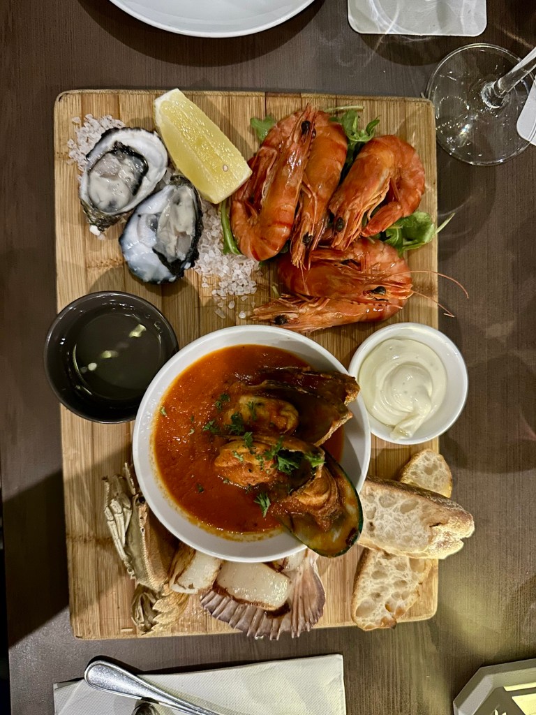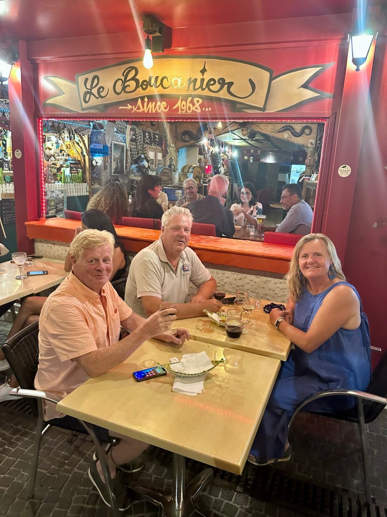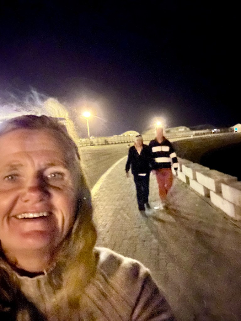 It was overcast all day; the water was at 22 degrees, and the air maybe at 24. I finished knitting one sleeve of the cardigan but not the finish. I’m considering whether to have a pink or blue edge. For dinner, we had tomato and mozzarella for starters and a pizza that we shared for the main course. I finished listening to “Death Gets the Blues.” Part seven about Hercules who goes on a cruise and solves crimes. A light listen that’s good during my watch. I went to bed at 22:00 and was woken shortly before 4. It’s great to have so many hours of sleep, or at least rest since I wake up occasionally as it rolls quite a bit.