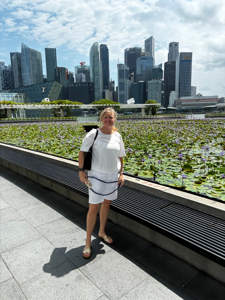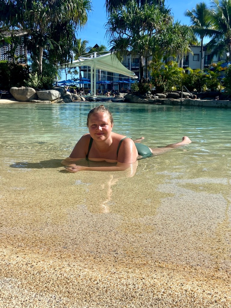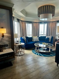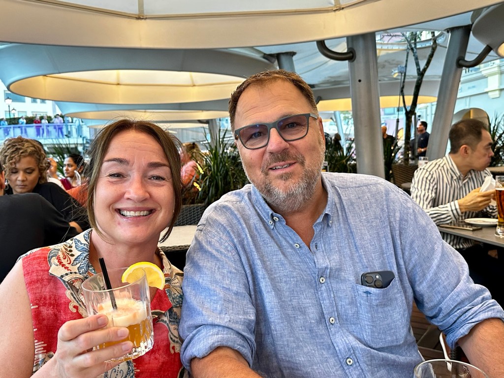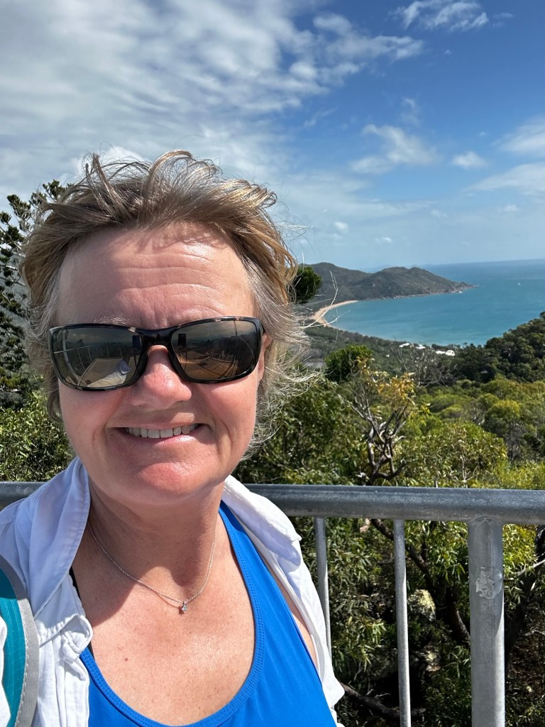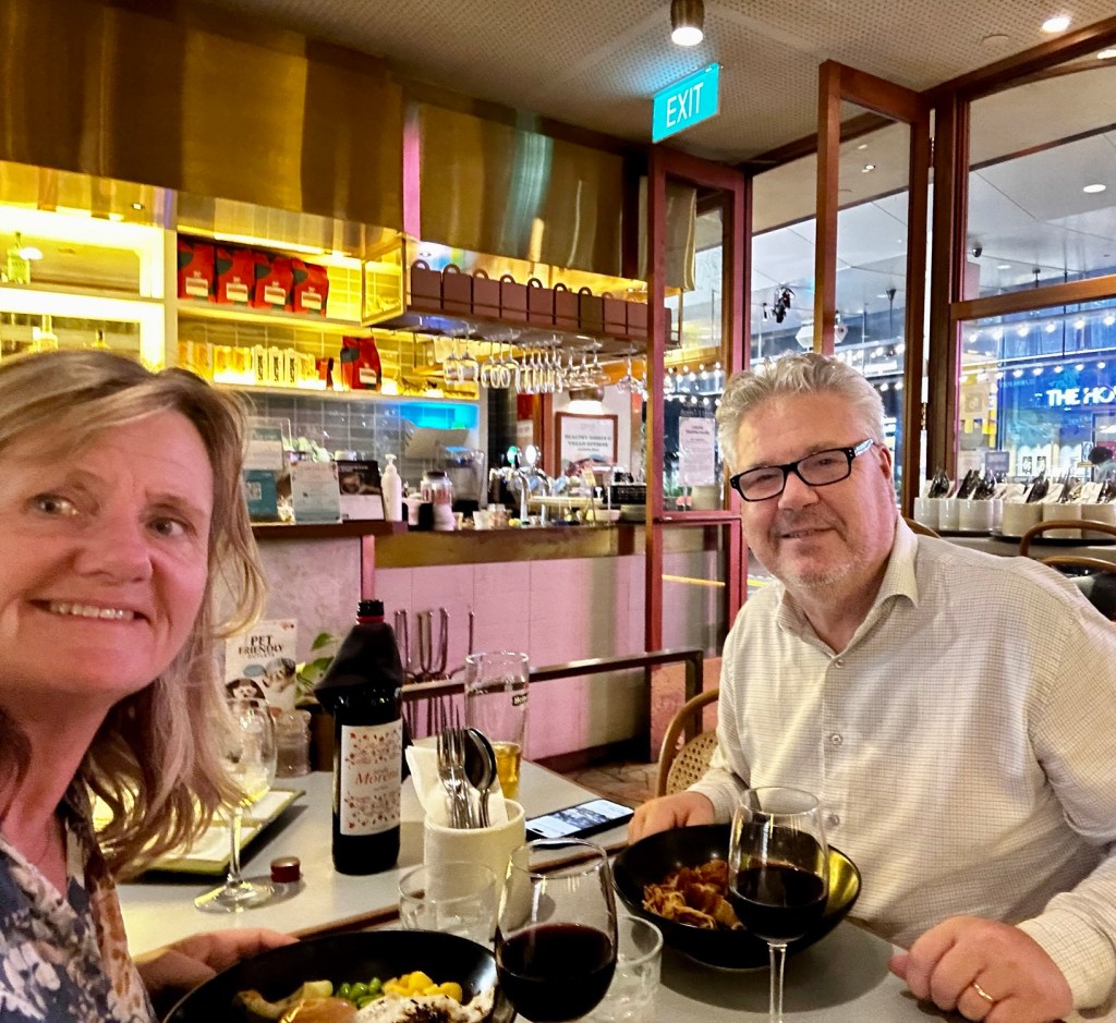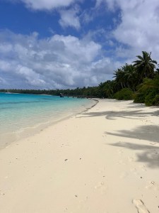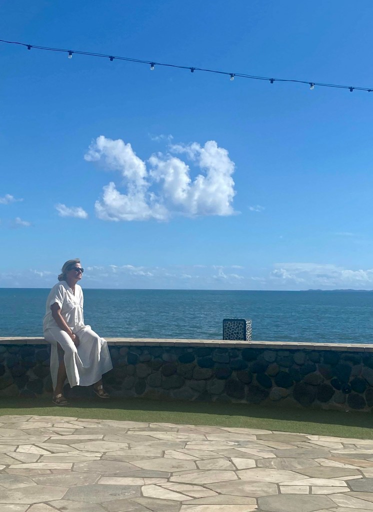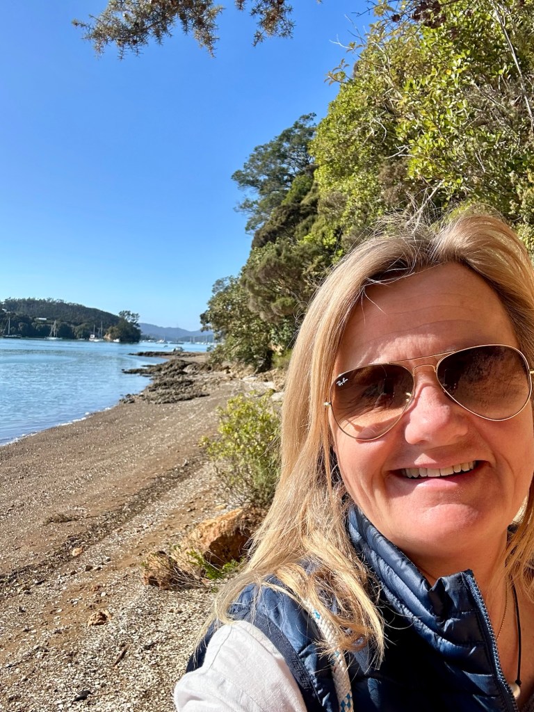 It was overcast all day; the water was at 22 degrees, and the air maybe at 24. I finished knitting one sleeve of the cardigan but not the finish. I’m considering whether to have a pink or blue edge. For dinner, we had tomato and mozzarella for starters and a pizza that we shared for the main course. I finished listening to “Death Gets the Blues.” Part seven about Hercules who goes on a cruise and solves crimes. A light listen that’s good during my watch. I went to bed at 22:00 and was woken shortly before 4. It’s great to have so many hours of sleep, or at least rest since I wake up occasionally as it rolls quite a bit.