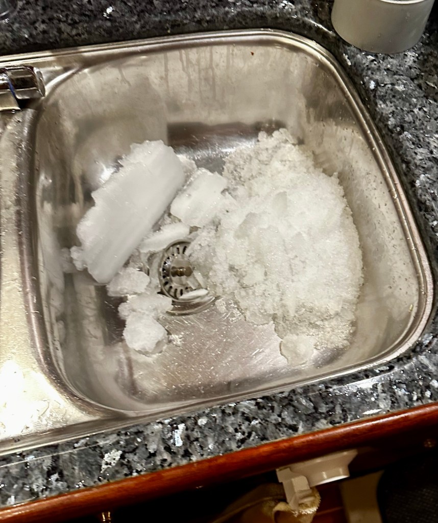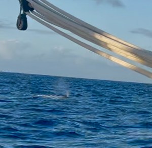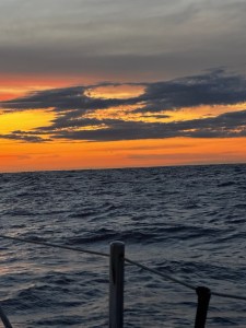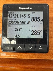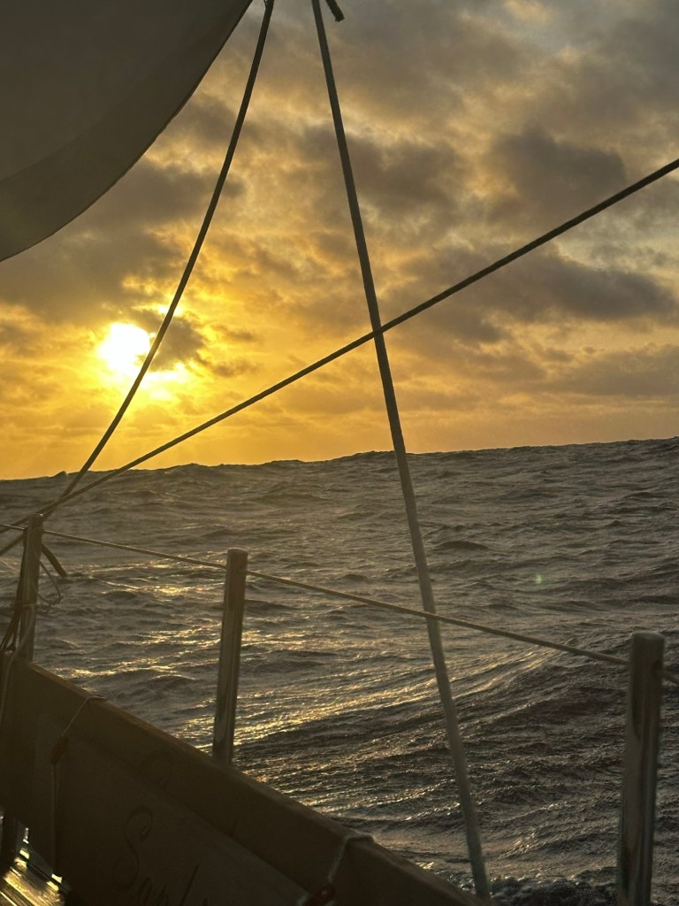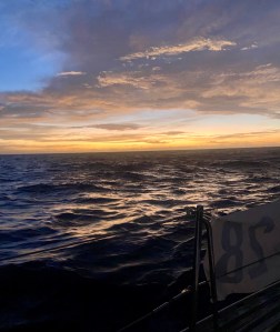 It’s just under a half moon, so I’m still enjoying being able to see the sea even at night. We are slowly getting closer to the rhumb line. It has been cold at night; this is the first night I’ve frozen. The water is only 22 degrees.