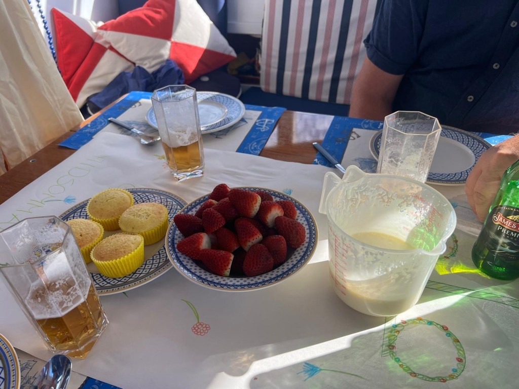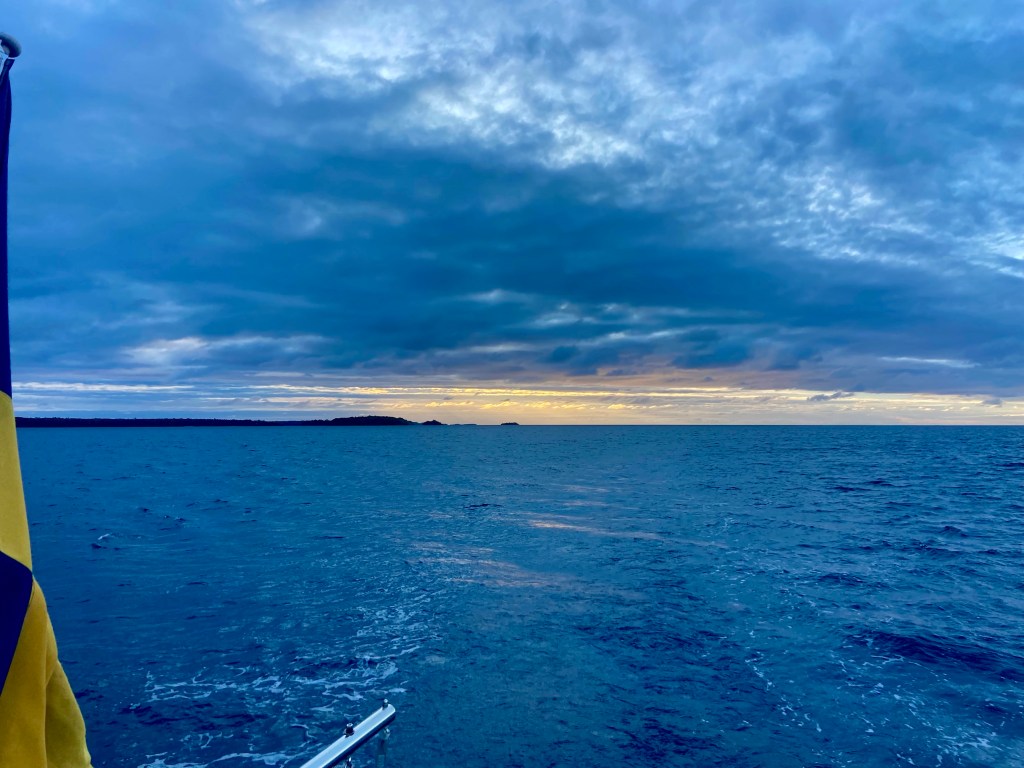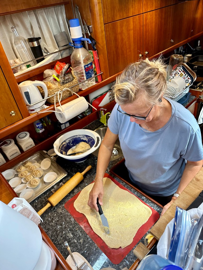 Day 5. The night was calm. Our log has started working again but isn’t fully synchronized. We’re running on the engine as wind speed is 2–3 m/s. At 9, when Edgar wakes up, we can sail again, but only for a short while. It will mostly be motor for the whole day. Since we had the engine on, I decided to make waffles, and as soon as it was time to plug in the waffle maker, the wind picked up and the sails came out, and the engine turned off. Well, it’s lucky we have full batteries.