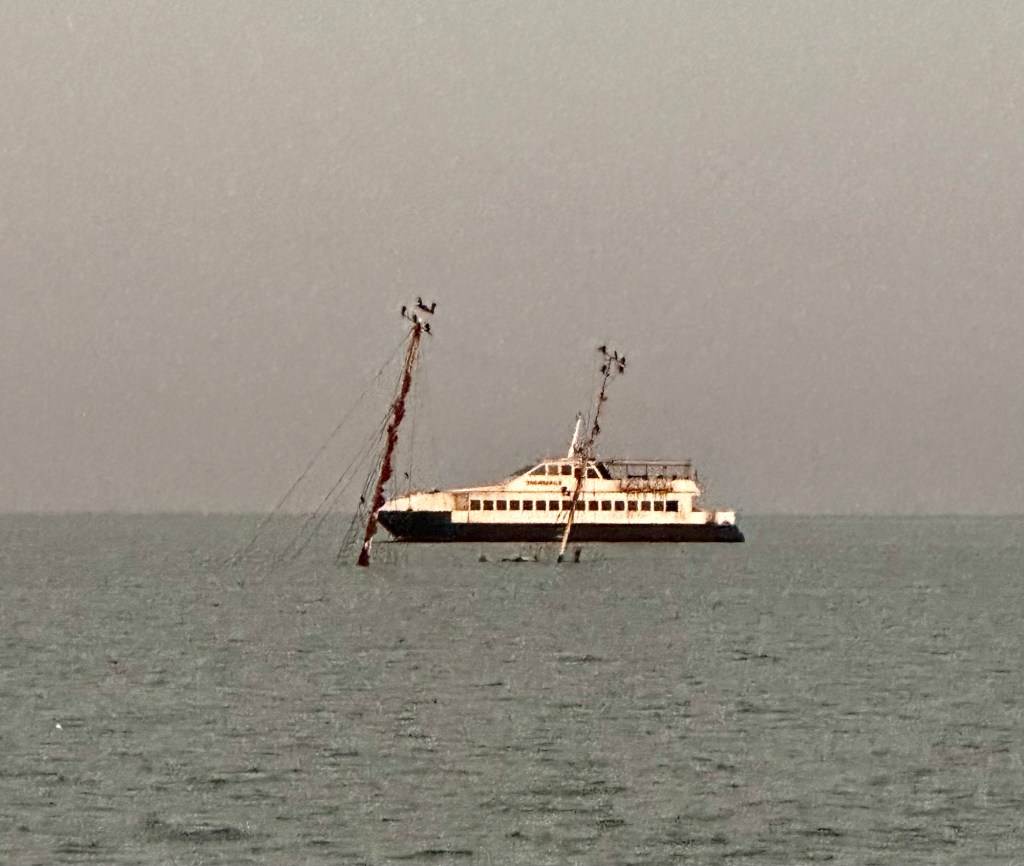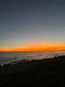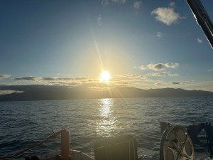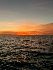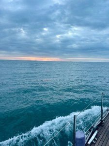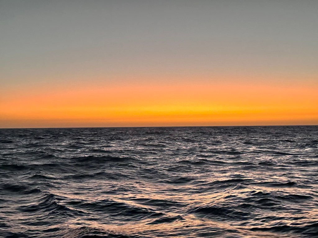 I wake up around 1, as it’s rolling heavily, but I don’t have the energy to go fetch the extra cushion that could help keep me from rolling. After a while, I manage to fall back asleep and wake up at 3:15 and get up. Feeling a bit sore, as if I’ve worked out. I need to remember to bring a cushion/mattress piece for my bed so I don’t roll around so much. My body is starting to feel worn out from all this rolling. It’s rolling heavily and unevenly all the time.