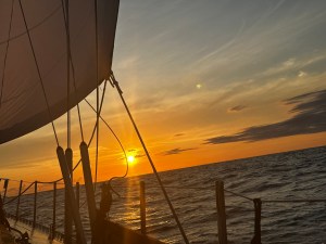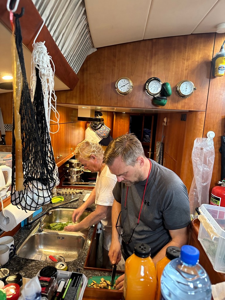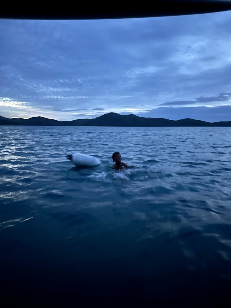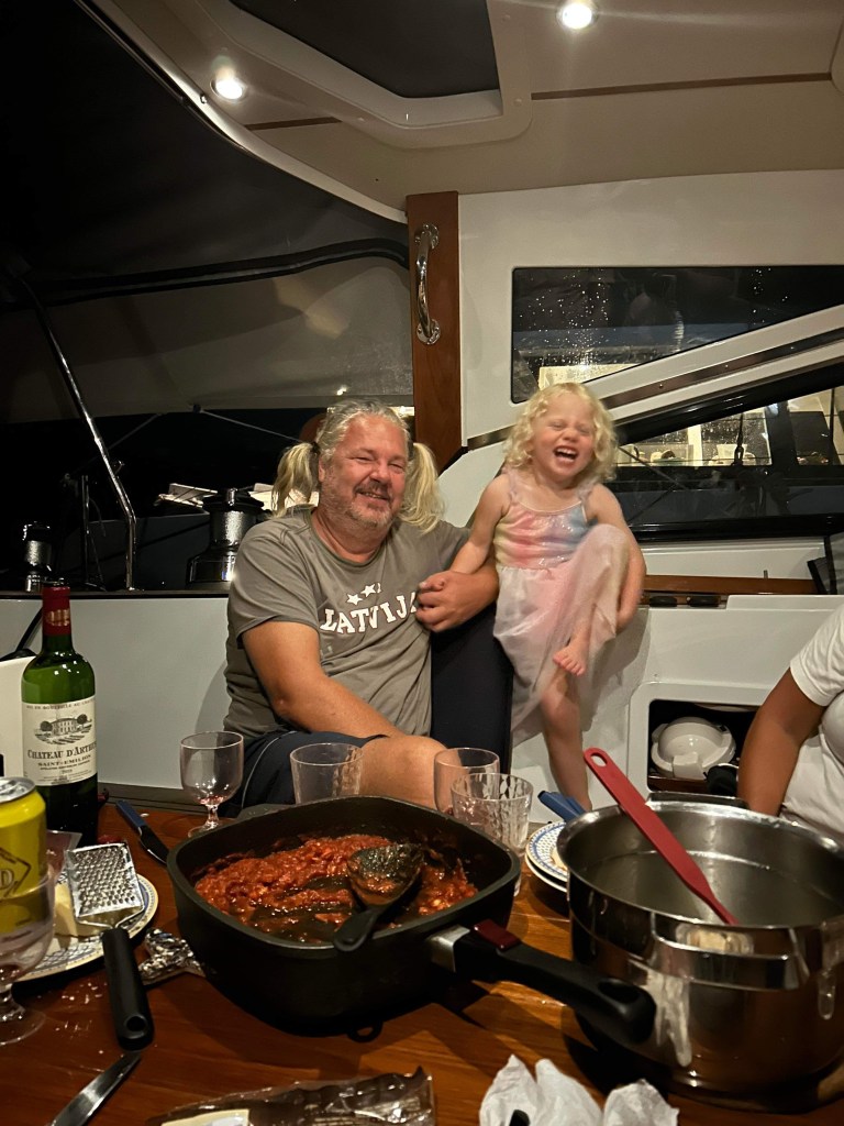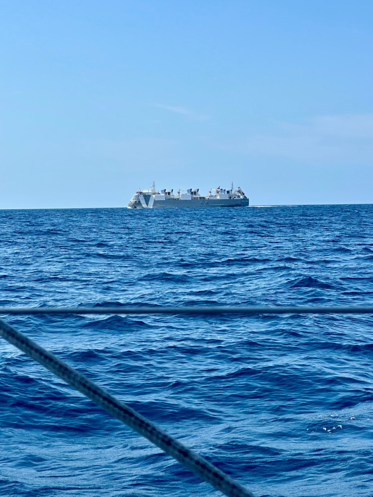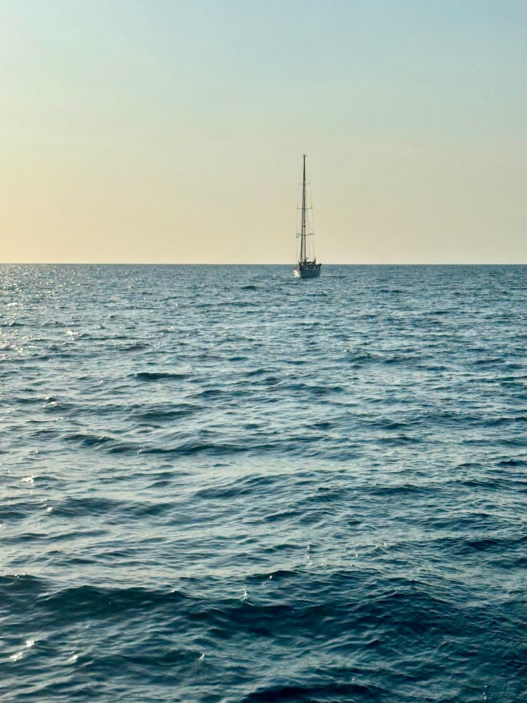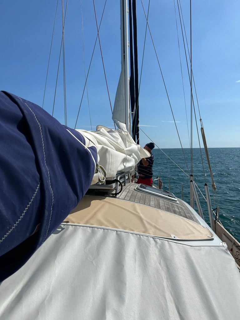 Day 4. I Slept until 3. I got 5 hours of sleep, but was up twice because Edgar needed help. It has been a calm day, and we’ve been able to maintain 4–6 knots. We’re steering northward but not directly toward our destination. We’re maintaining about 40 degrees off course; unfortunately, at some point, we managed to steer only 10-20 degrees off. Energy remains low since we haven’t eaten much. In the evening, it gets better because today we had boiled eggs and sandwiches for breakfast, yogurt for lunch, and lasagna with salad for dinner. I’ve binge-watched several episodes of “Parenthood” and started watching “Four Seasons.” Time goes a bit faster with Netflix.