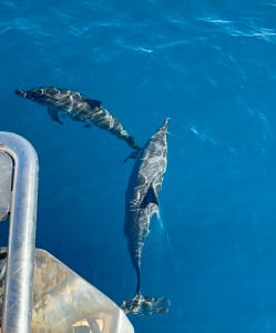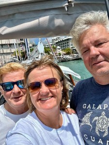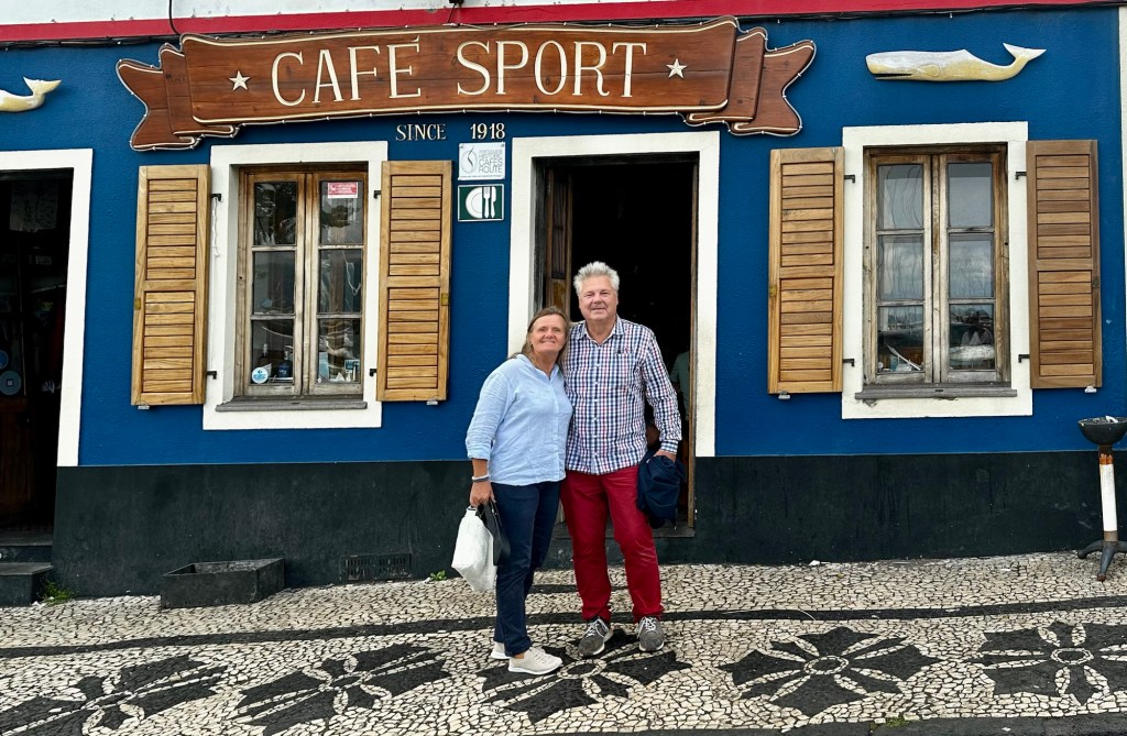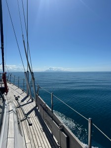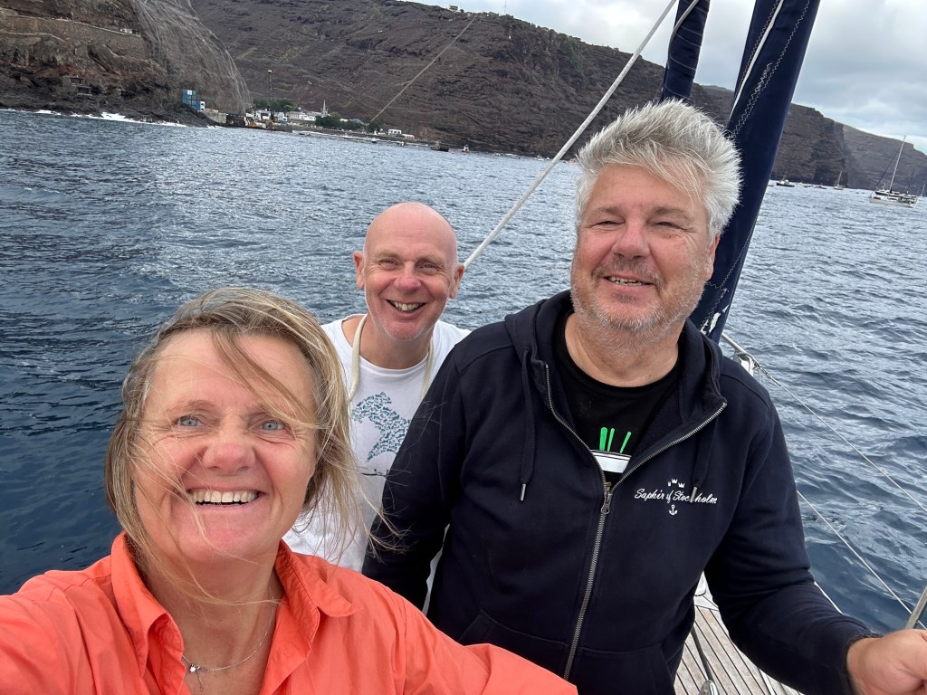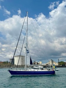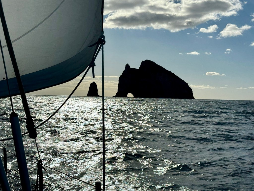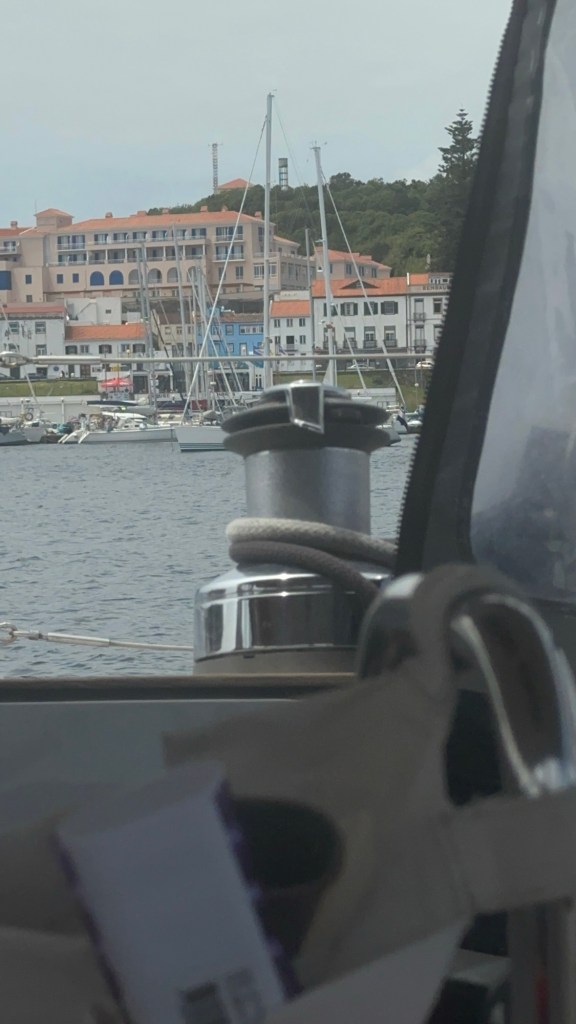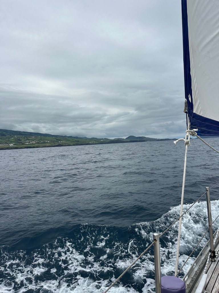 We have land in sight and are slowly but surely approaching Horta. The harbor is full, so we anchor and hope to get in the next day. 2200 miles became 2400 nautical miles, and we avoided the storm that was predicted; we’ve seen lots of dolphins, I’ve managed to knit a bit, listen to many books and most importantly, we’ve arrived in the Azores, and our daughter Elise is coming here to sail with us to Ireland.