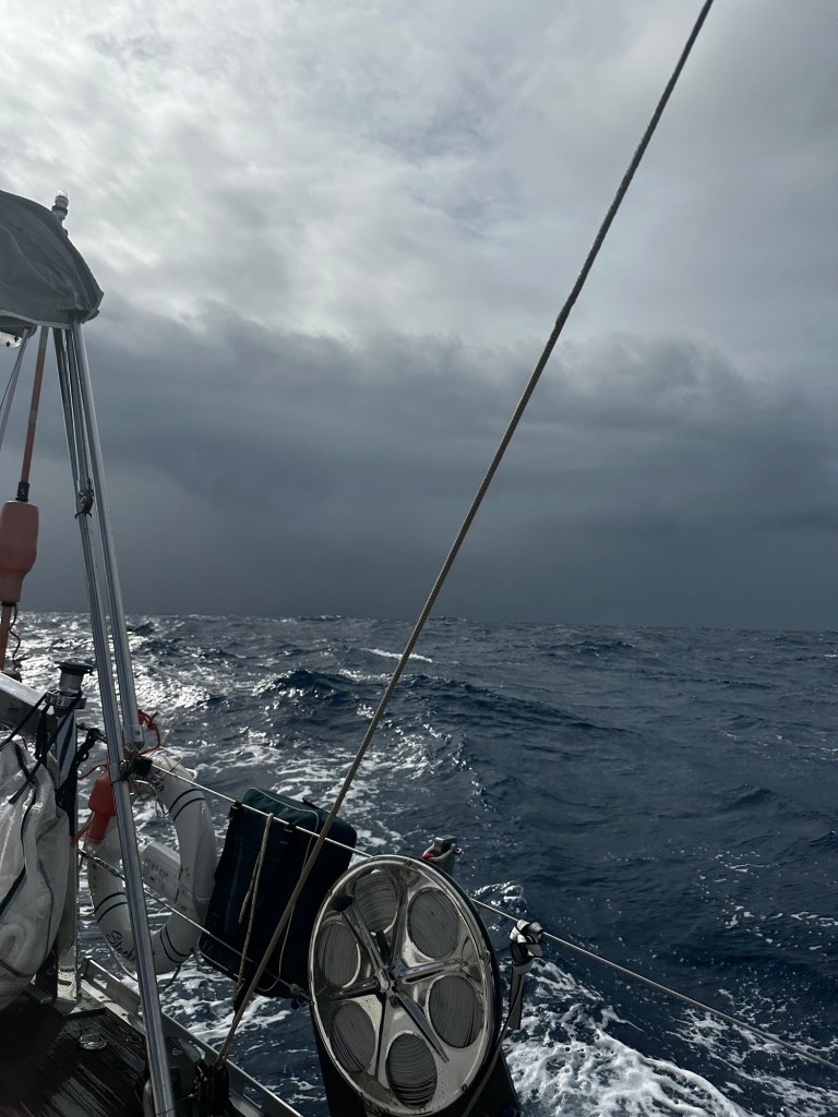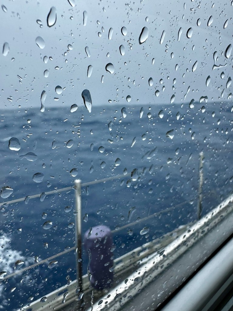 The wind seems to be shifting, or at least swirling a bit. One moment it comes from behind the starboard side, and the next, it shifts to behind the port side. A small course change of 4 degrees made things much more pleasant on board. The course to Horta is 64 degrees, and we’re sailing at 70–75, so a bit too much on the starboard side, but apparently, there’s a storm a bit further up, so we’ll stay at 32 degrees N for now.