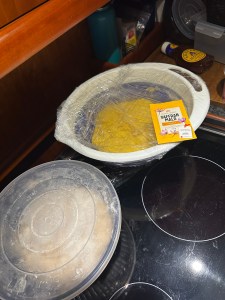 In the evening, I made risotto with mushrooms on the side, chicken fillet, and salad. It’s nice to be able to eat cooked food. I tried the bread mixer, but it didn’t want to rise at all, so I baked Fatjax’s bread recipe, which has always worked well so far.