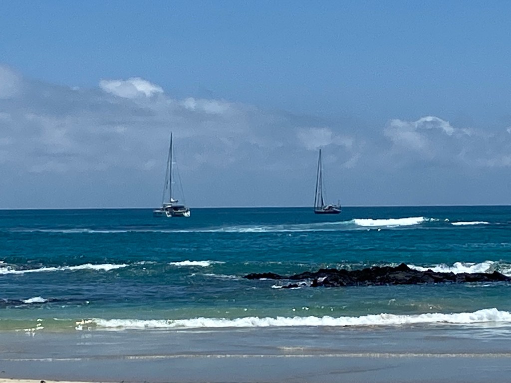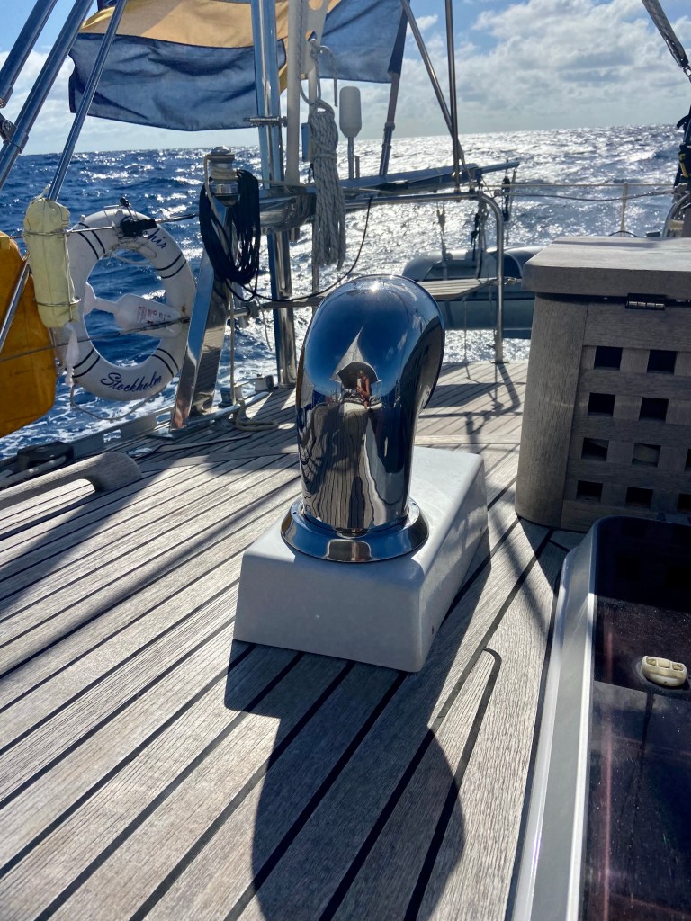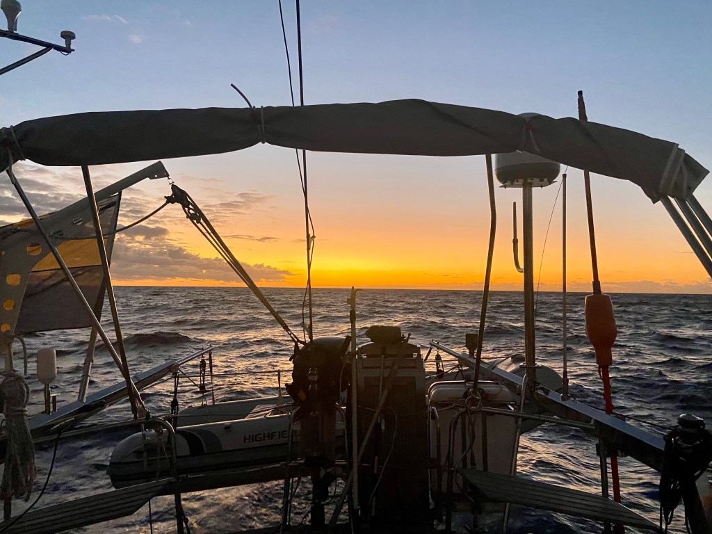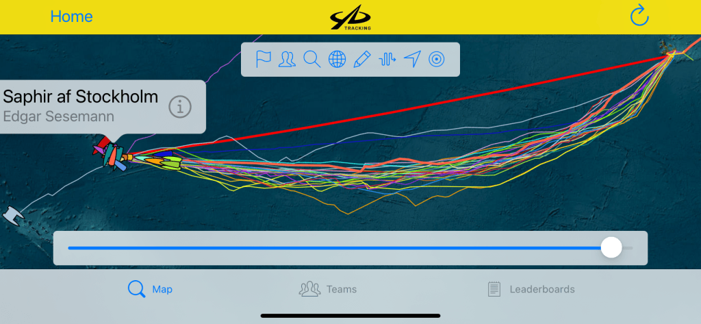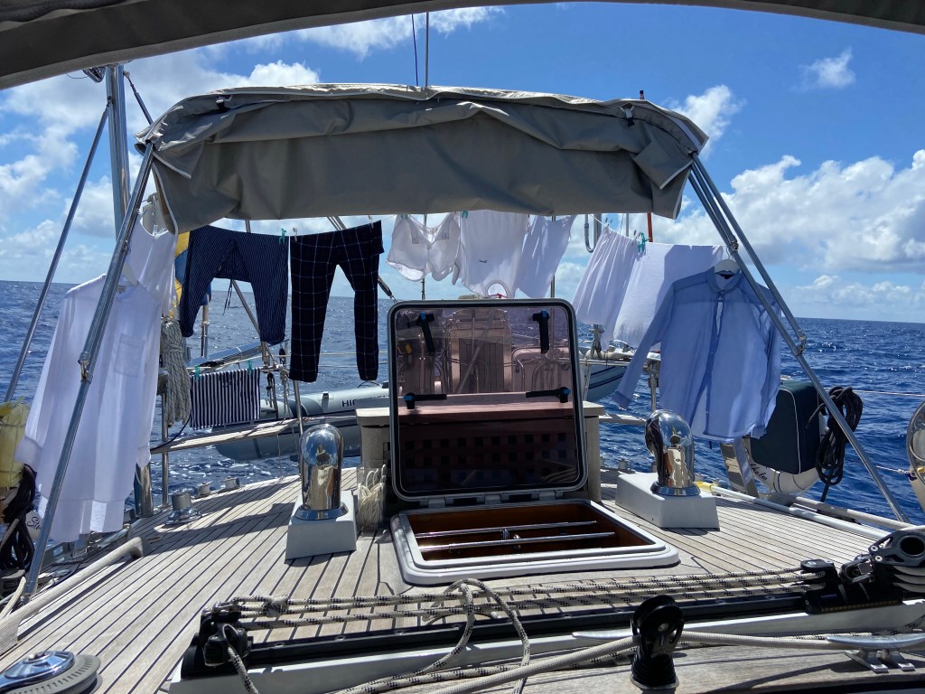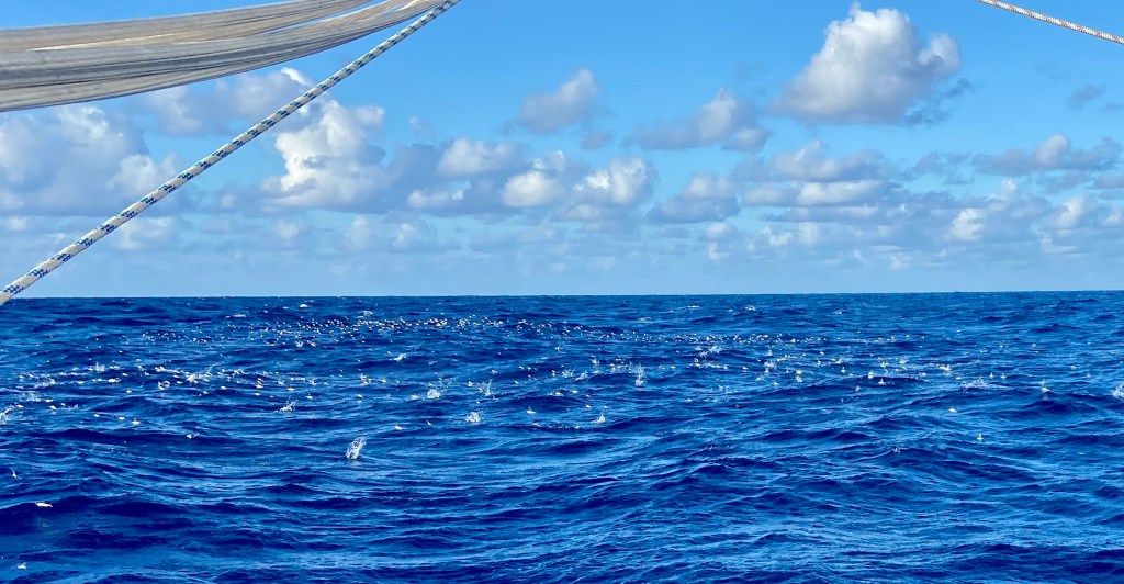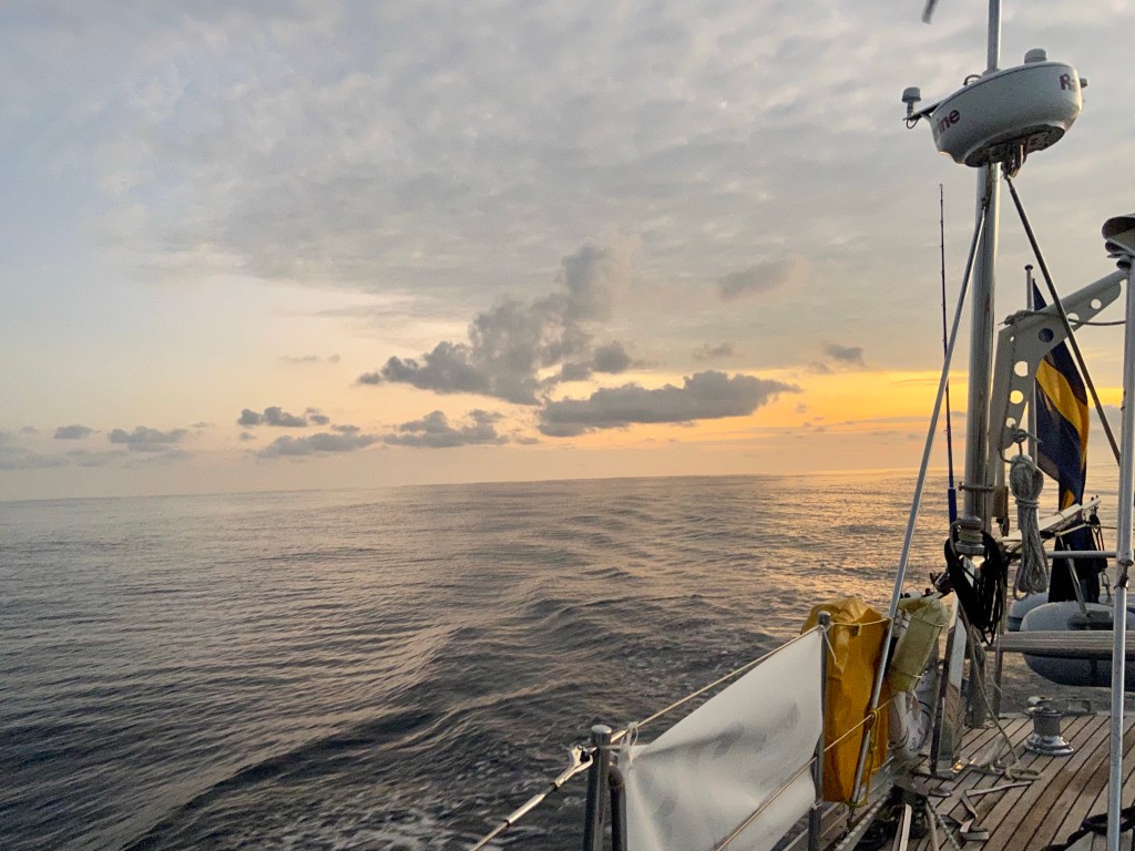 After 18 days on the sea the wind dies out and we only do 2-3 kn. So boring and so rolling. Time for the iron genua to work. The positive thing is that we get less rolling due to the speed and help with the mainsail out. I even can sleep in my one bed for a few hours. Many other of the boats also had put on their engin, but we heard from them later that they got some wind and could sail a bit again.