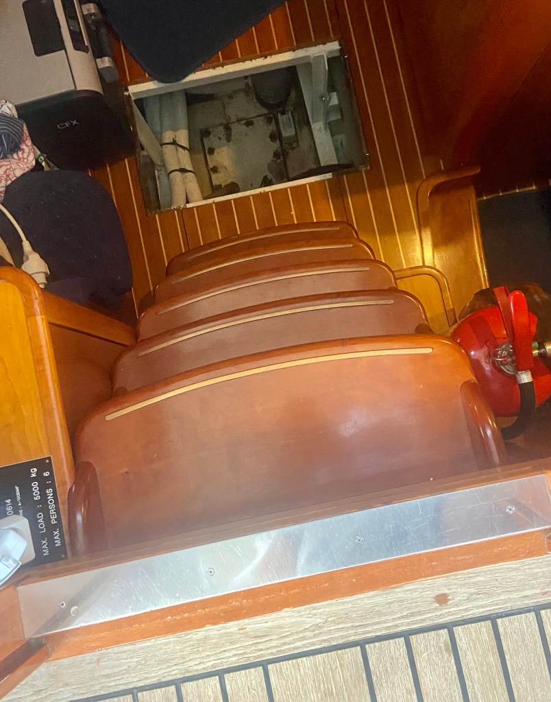 The next morning the engine had to work for a few hours due to no wind and unfortunately we got water in the engine room. Edgar saw what the problem was but it is not easy to fix on sea. So we have to empty it out from time to time. To see how much that comes in we have taken of one off the hatches to the floor to see. Just have to be very careful when we go down in the boat. An other day our generator stopped working and we had to use the main engine to load our battery until Edgar had tried different things and solved it by changing an impeller.