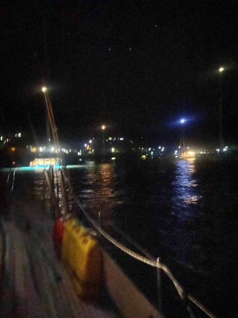 After 20 days and 13 hours 47 min we have crossed the finish line and can anchor to have a nice sleep in our new made bed. It was totally black since it was around 23 hours when we arrived.