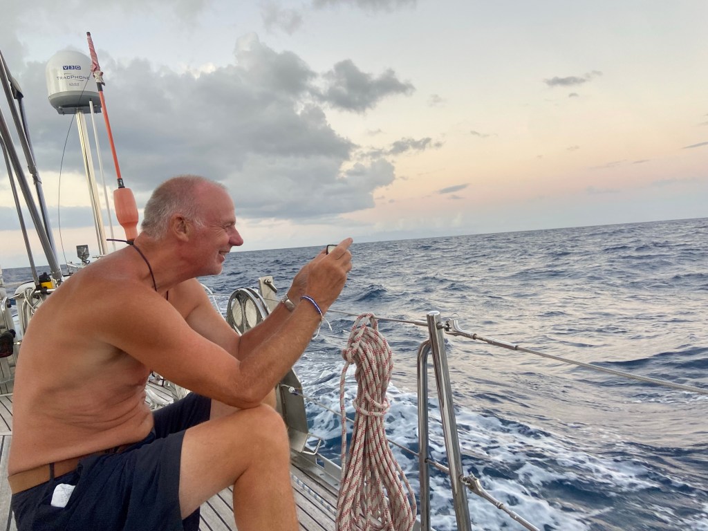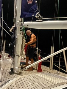 The wind changed so Edgar and Chris went up and change the sail and took out the spinnaker boom on the starboard side. According to the weather institute we was not going to have much wind