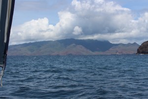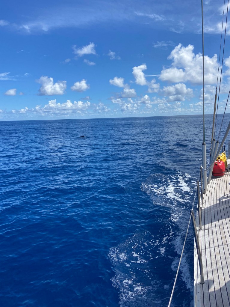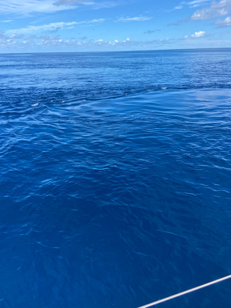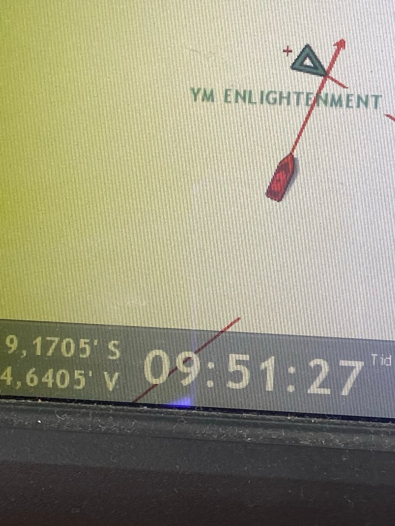 The ocean is big and we don’t see any ships often but suddenly there is one huge container ship coming in to our plotter and it is quite close but has a speed almost triple ours so we could follow our run line and not need to change course.