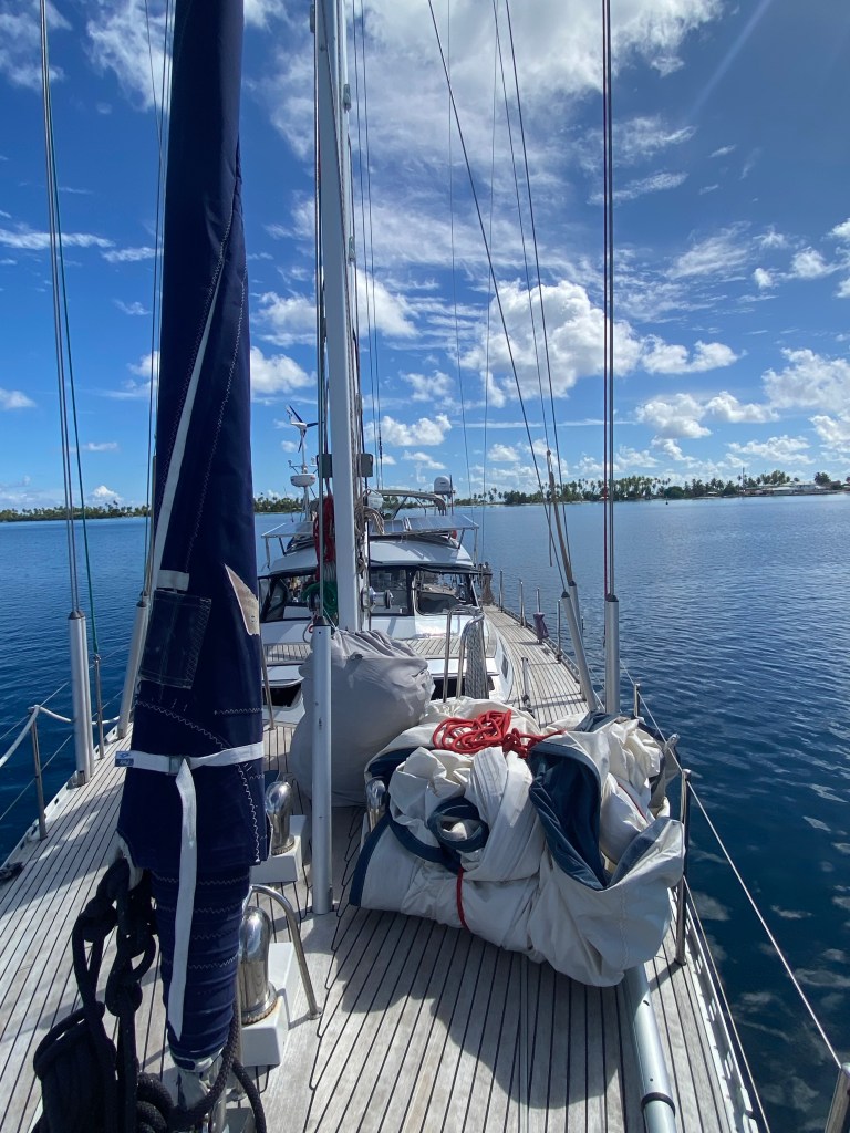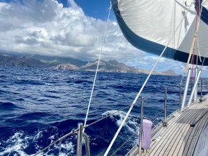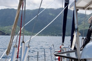 After a bit hassle with the Esta application we finally got it to work and could get back to the boat and hoist the anchor at 11 a clock. Some of our Arc boats went out at the same time but just to go to an other bay on the island. We was the only one sailing to Tuamotos.