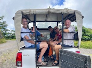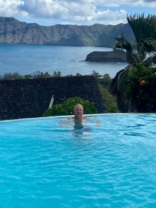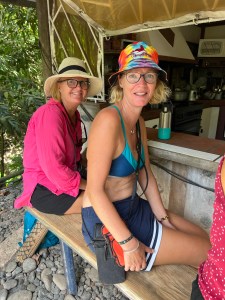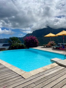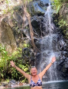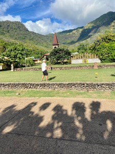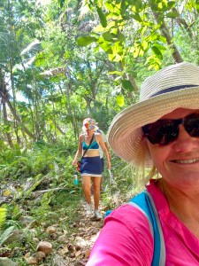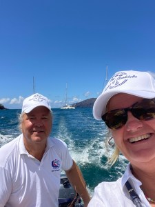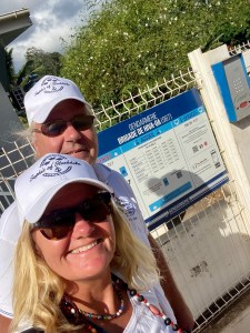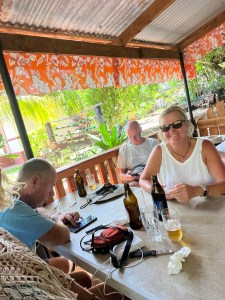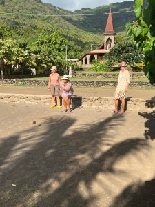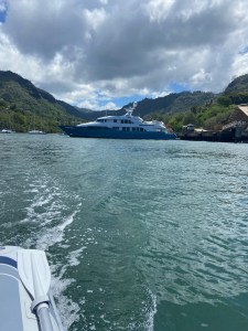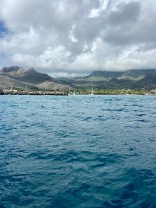Just befor dinner time Chris says look there are dolphins here. This time they stayed around the boat for 30 minutes. We do think it was around 50 of them. It was so great to have them around the boat and I did get a good video when one of the jumped. What a great ending of our first sailing day. Next thing will be to catch a fish. The fishing stick and New is fixed after some shopping in Nuku Hiva .