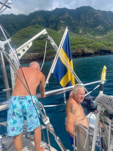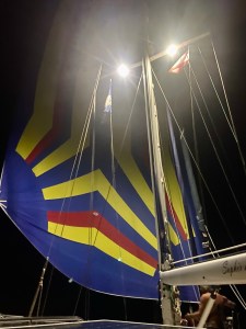 We had a good sailing. Doing 7 knots with the spinnaker up. I am so glad that we have Chris onboard. Specially now when I still have so much pain in my tailbone. It is hard to find a way to sit with no pressure on it, stand up can also be painful and even turning in bed is. Hope it will be better in a few days.