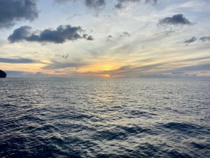 We took three hours shift from 19.00 to 07.00. That means that one have to do 2 shifts one night. I took the first one and hope that we will be there before the forth night. It was a lovely night filled with lots of stars and the moon shining bright. So this time I was awake during sun set and sunrise. I do enjoy them very much