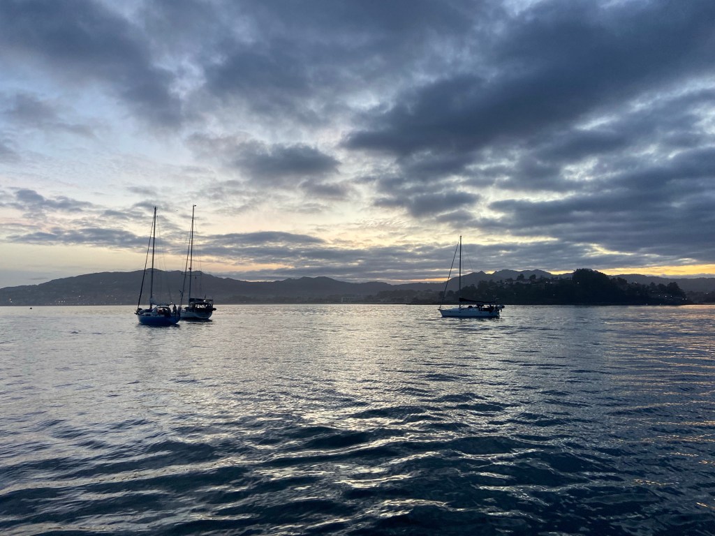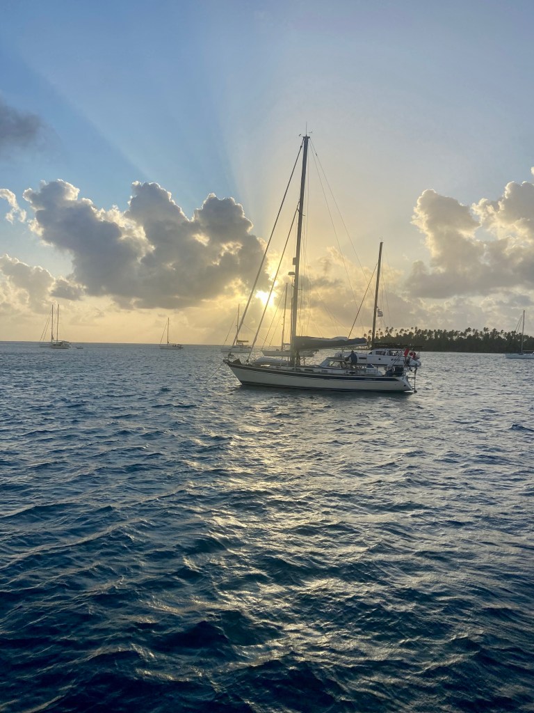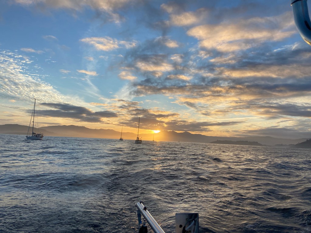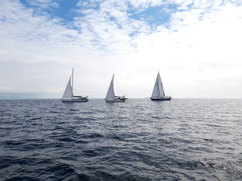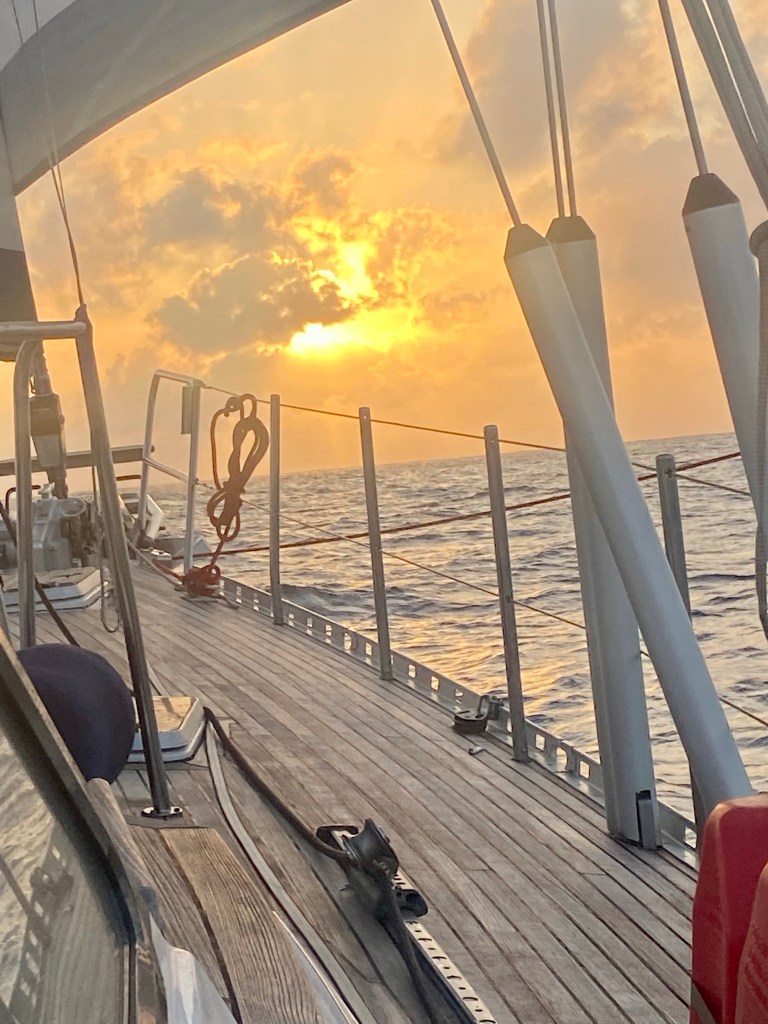 Lovely sunsets and sunrise. Love them and continue pinching my arm to realise that we are hear and doing this fantastic adventure. We didn’t see many other boats with our eyes ther came a ship and also our friend boat Enalia suddenly cross just in front of us.