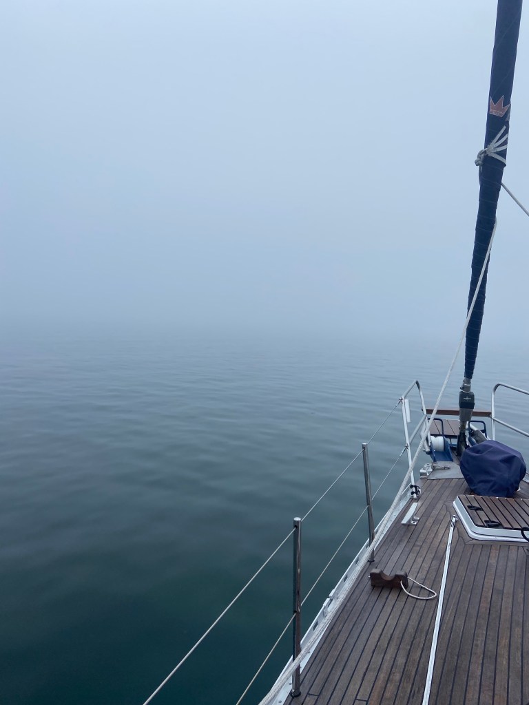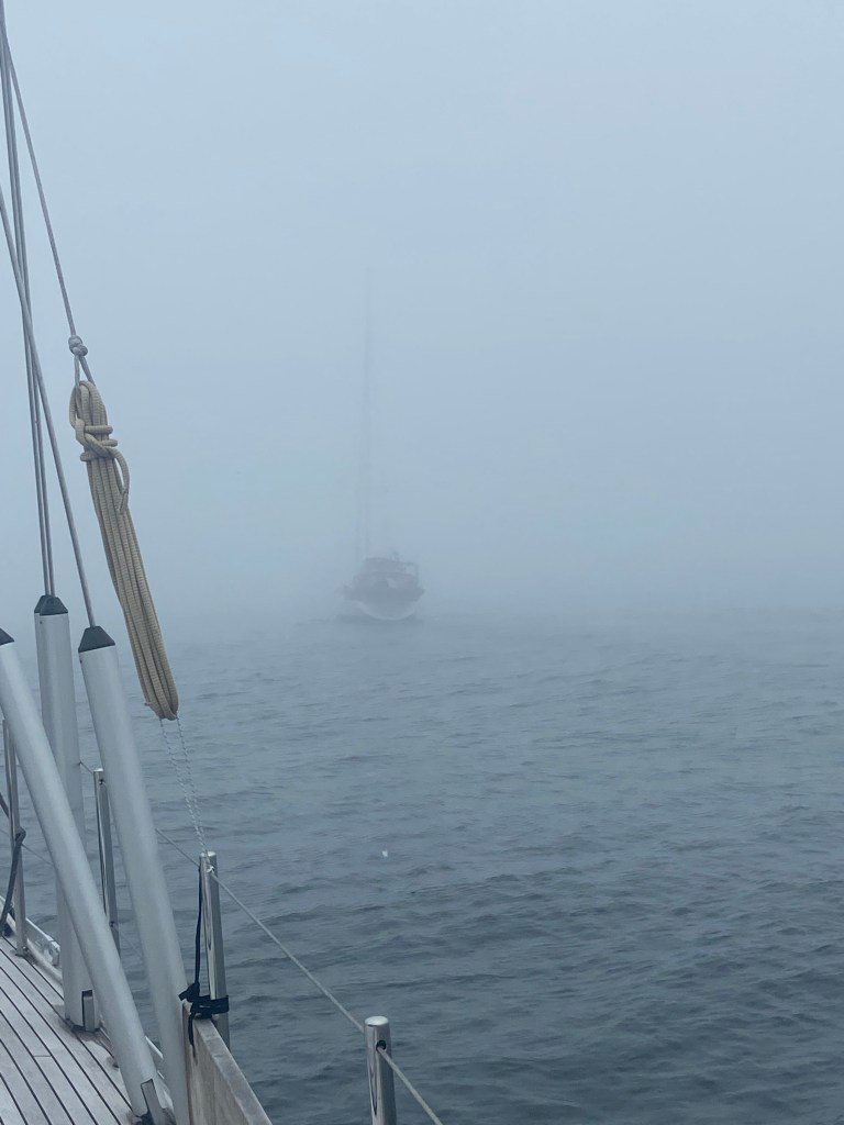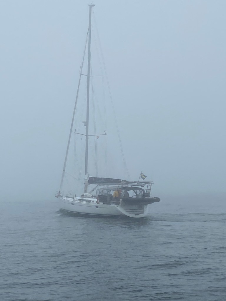 Plan changed. We leave Muxia in the morning and sail in a convoy down to Ria de Muros. The fog was very intense when we woke up and kept like that for almost the hole day. Our New sailing friends Zelda, Life@Sea, Morning Glory and Currier Sud are there in the front somewhere. You have to be very close to see each other.