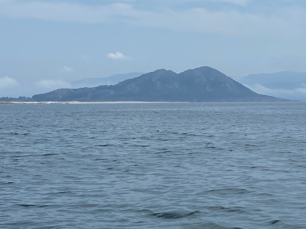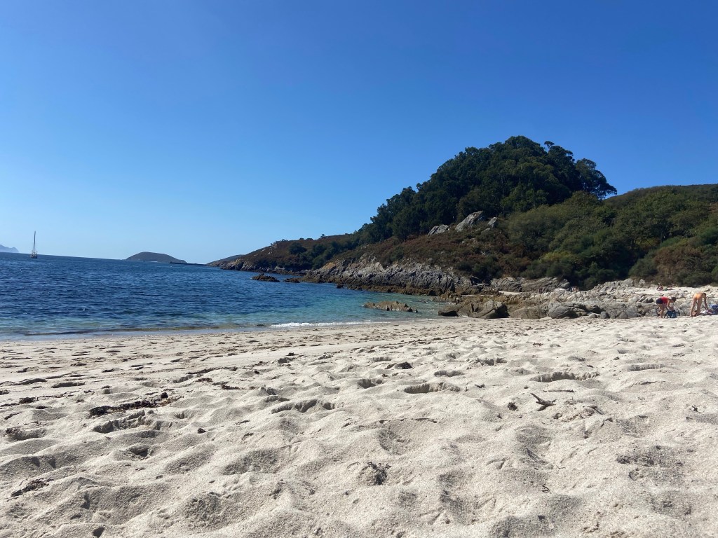 In the morning we left to go to Illa Ons, a small island just outside the Ria, while the rest stayed to go to Santiago de Compostela. It was just a few hours out to the Island. Before we could anchor we had to apply to make sure that it would not be to many boats and person that would be on the Island as this is a National park. When the anchor is in the dinghy goes in to the water and we get in to land and to the beach. So nice to have sand between my toes and take a dip in the water when I felt for it. It could have been warmer but okay . Think it showed 16,5… but is was very clear and nice. What I didn’t expect on the beach was total nakedness of some people. Of corse it is up to anyone to choose to wear or not wear swimwear’s. Not that I am that prude but I wouldn’t choose to go skinny-dip in public. On the beach we met the couple from the Swedish boat Viking goddess Anna and Clyde. Believe we will see more of them along the coast. And yes we did.