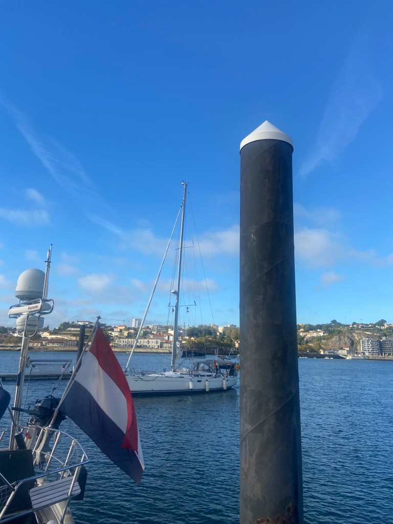 The harbour in Porto is located in Duero River less then 1 km from the Atlantic sea. This effected us very much during high and low water including the swells. It felt like we been out sailing and not laying calm in a harbour. Worst was on Monday to Tuesday when it was very windy and raining. All boats was bumping around. During the night we lost one fender and one was in the water that we saved. Sadly the boat got some scratches that Edgar have filled in as good as he could. It is not easy when it is bumping. The positivt about the harbour is the view, the location as in close to the Sea , the city and have a cute little village next to us with restaurants, food stores, cafe, bakery and a Portuguese traditional washing place
