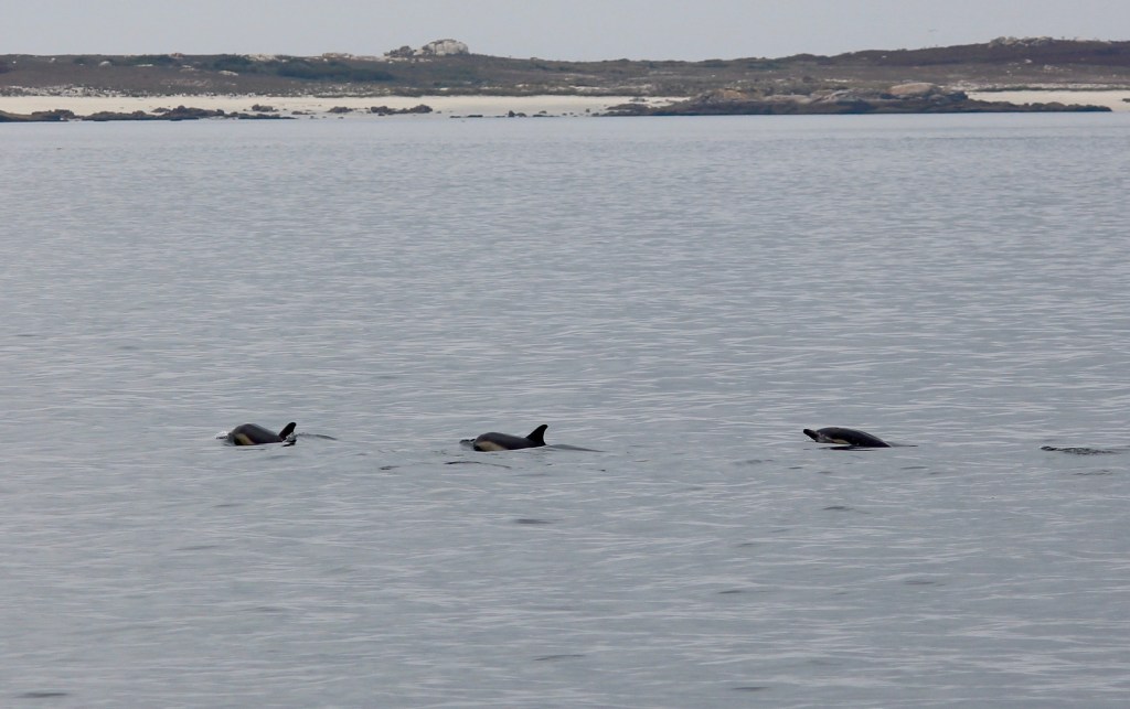 When we get closer to Ria de Arousa we have to go round the island since not all of us had received the license to sail near National parks Islands. There are a few of these Islands and we heard that they are very lovely so we wanted to make sure we could go there. Entering the Ria de Arousa we saw some dolphins that I manage to get with the big camera. Next to Ribiera harbour there is a beach where we all anchored. After a while lots of dolphins came and played around the small sailing boats. Think one of the boys was extra happy. In the evening we had Anna&Peter,Sofia &Fredrik,Isabell&Chris and Christophe on our boat for a sundowner. It was very nice to sit down and talk to all of them and to get to know them a bit.