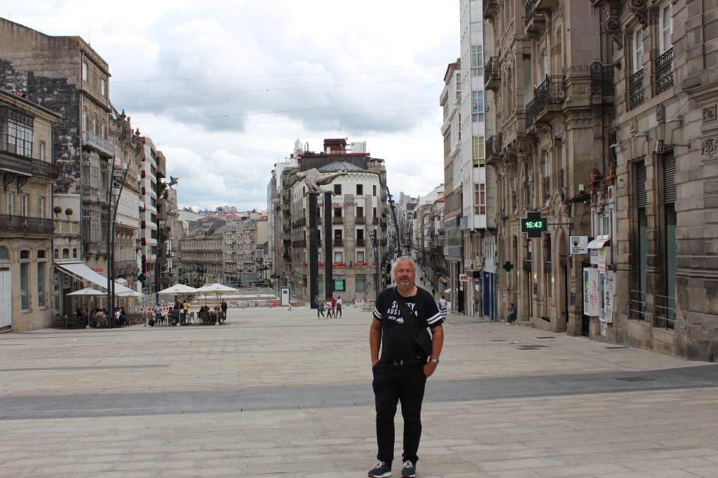 Next day we enjoy the beach for an hour before we had to go back to the boat due to the strong current. We hadn’t put on the engine so it was heavy to row back to the boat. The wind was getting stronger and also the waves so we decided to go to Vigo and explore the city and do a tour to Santiago de Compostela. The way in Ria de Vigo was very nice and sunny. We spotted lots of sailing boats that had a competition.Just when we had gotten in to the Ria we hear on the VHF that there are Orcas attacking a boat bit north of Illa Ons. Later we get the good news that the crew and the boat is okay and this time no damage on the boat. It had only been in the water for three weeks after been attacked by orcas and needed to be repaired. First time they hit the rudder so hard that it bent and the couldn’t steer the boat. We met them later in Porto.