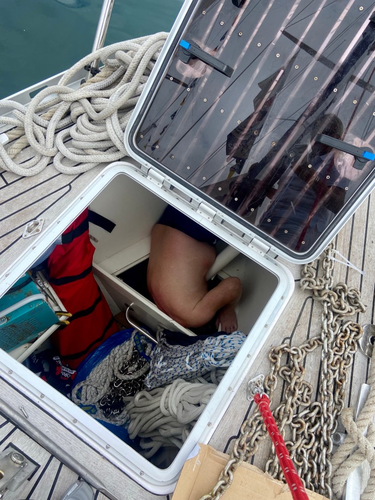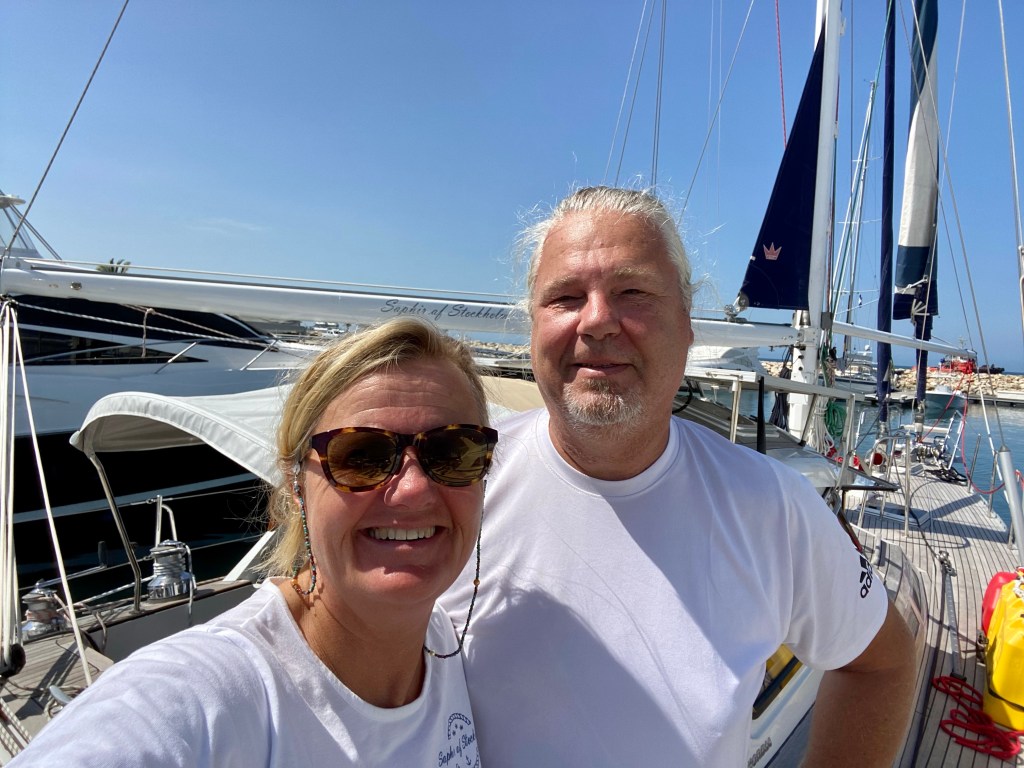 Our wind indicator is getting changed. Glad it’s not me on the top of the mast. It works and we can finally se on the instruments the strength of the wind and where it comes from. Makes sailing a bit easier