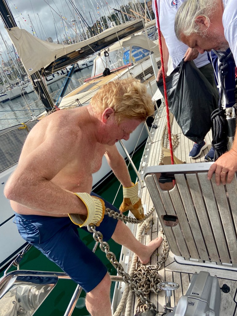 So what do you do when you are not sailing. Relaxing, like reading a book, looking at a film or sleeping…. Nope! sleep in sometimes yes ( if you ask our daughters they who’d say we are teenagers) and have longer breakfast. Otherwise it is like having a home that needs your attention like cleaning, washing, repairing, food shopping and also filling oil, or change it after a certain time,checking filters, fill up water, organising. And since I love to take lots of pictures there is some extra work sorting them out and then use some in the blog and when that is done time to write the text to the blog. This is not always easy doing it in an other language then your mother tongue and sewing of course etc. We still organise on things around to get them there best place. Wherever that is? At the moment the beds in the cabins are full and that is not good when we get guests onboard soon.