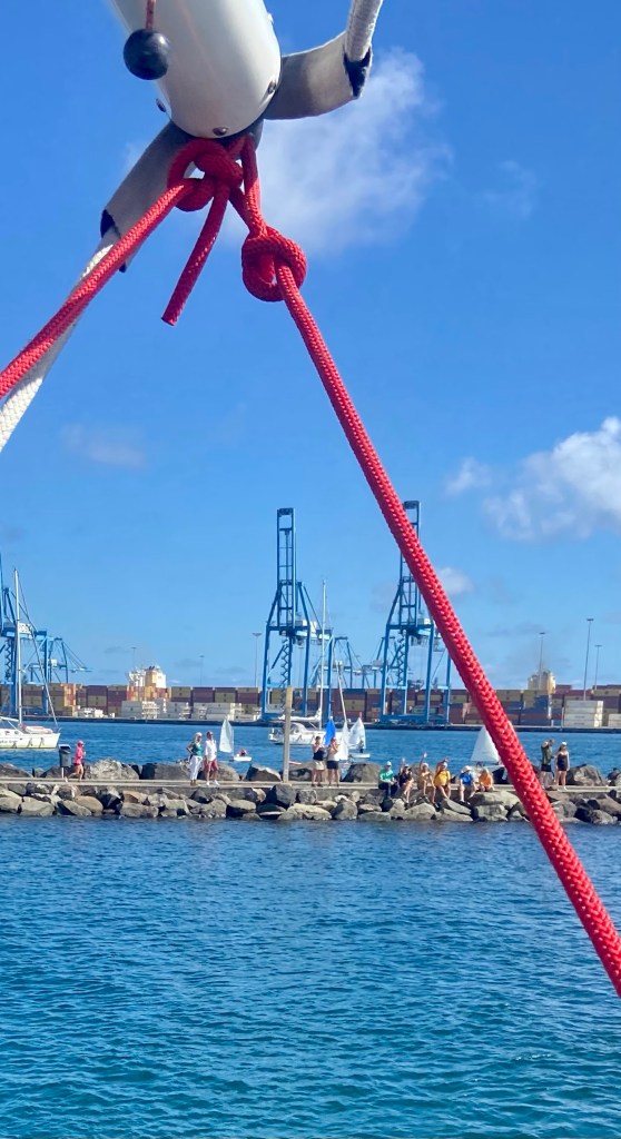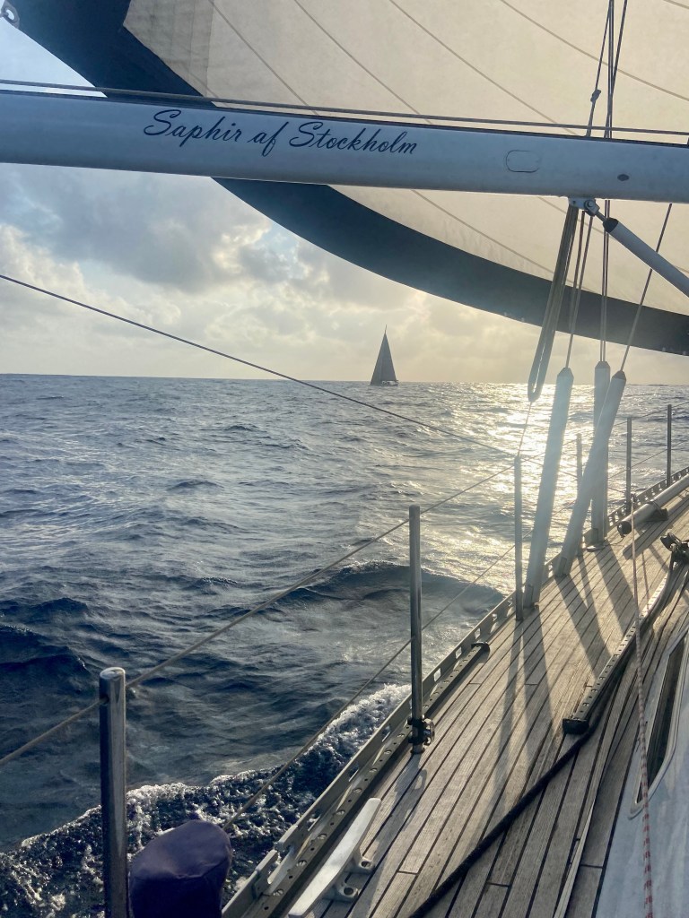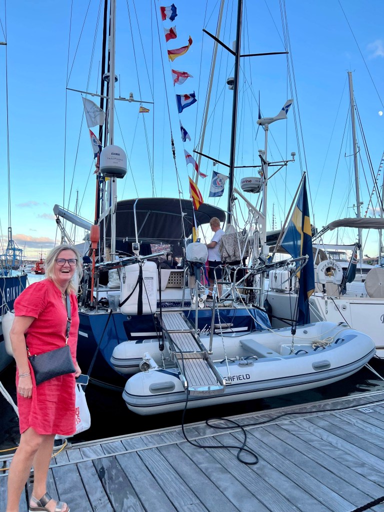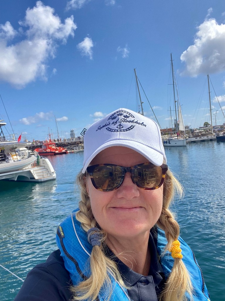 We wave by to our crew who went home to their wife’s. Five weeks away and three off them on the sea where there was limited contact. The wife’s was happy to get their husbands back home. I finished my knittings to my grandchildren so Matti took them home and I know that they will get them in time for Christmas. Let’s hope they fit them also. If you get caught in the rain you get really wet.. what to do then ? Bake Lussekatter of course. Glad I brought saffron with me. It is hard to find. In this heat you don’t have much energy and all things you plan to do takes so much longer time and you need to rest in between maybe take a dip in the pool in the Marina. Which was very popular amongst many of us but guess the kid’s most. I am so glad that we got help with cleaning the hull and all our stainless steel. Vinegar in the water is the trick to get rid of the salt and after that wash the hull with boat shampoo. The boat is shining again. For now… The riggers fixed the fueler and now it is working. With help from Even, Jörn and Johnny from the Norwegian boat Lise the sail is back in the mast. Thank you guys for the help. Me and Edgar couldn’t have done it without your help. Lise and Saphir is actually roommates. Hmm you think a boat can’t have roommates but they can. In wintertime they are at the same yatch service in Henån. And now we have been sailing from Las Palmas via Cape Verde and to Grenada. The world is not that big…
