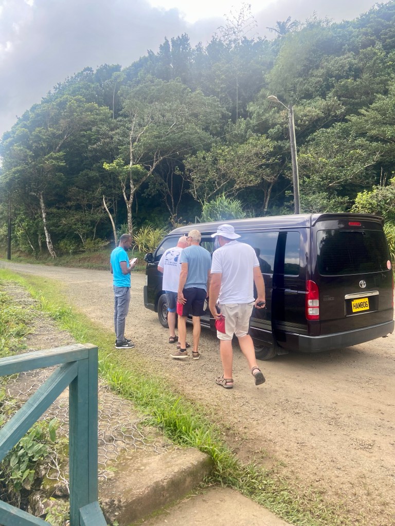 Matti went to a hotel to get better sleep. Although it didn’t roll any more. He needed to stretch out and get some better sleep maybe also a little bigger bed. The cabins beds are not the biggest one although Magnus stayed on the boat with us. The three of us went for a walk and ended up almost in the city center. We didn’t want to walk back in the heat so we decided to take the bus back to the Marina. These minibuses fit 14 plus to in the front. Only cost 2.5 Caribbean dollar wich is 10 sv kr. They let you jump on and of where you want on the route.