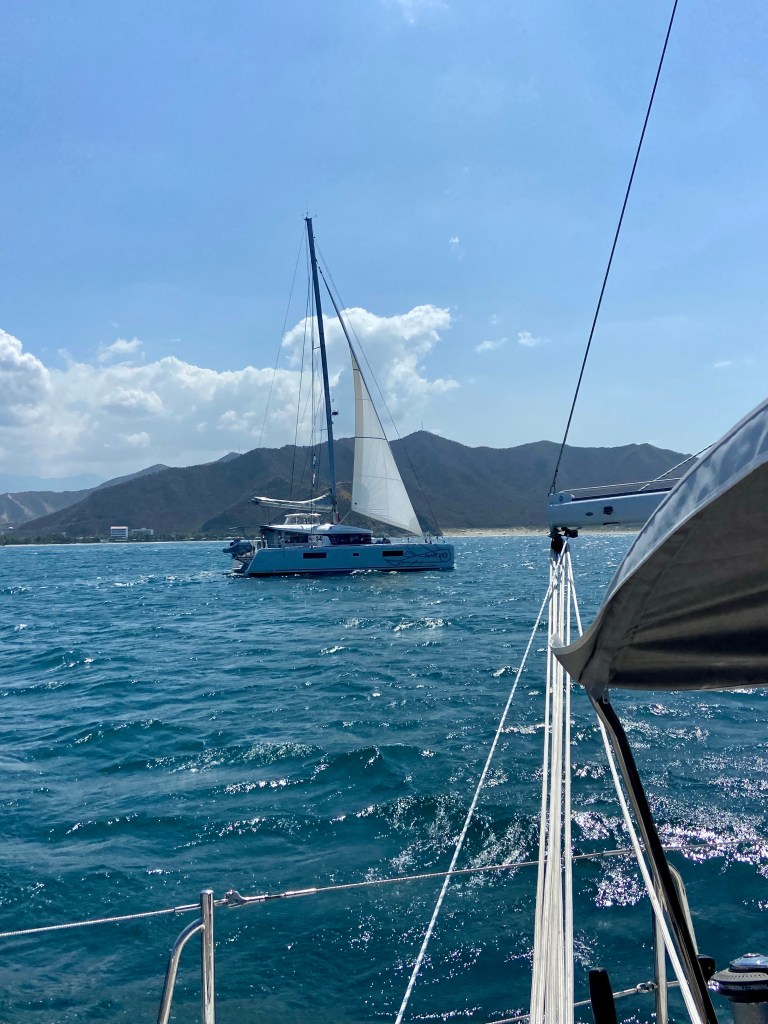 Start shot came and we sail east and some of is slightly more south. After a couple of hours we came in to a really dirty water. This is from the river that comes out next to the city Barranguilla. From other boats we learn to be careful and keep good watch since there might come a three or anything else in the water that the river brings along.