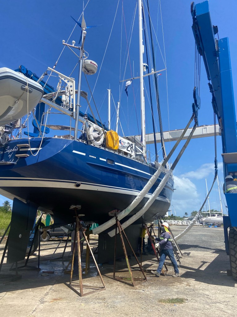 We have planned a hall out of Saphir on the 9th of Aug and going back in on the 4 sep to get the hull painted again so we have less things that can grow on the hull which will help us not so lose speed. The growing can actually slow us done up to 1 knot.