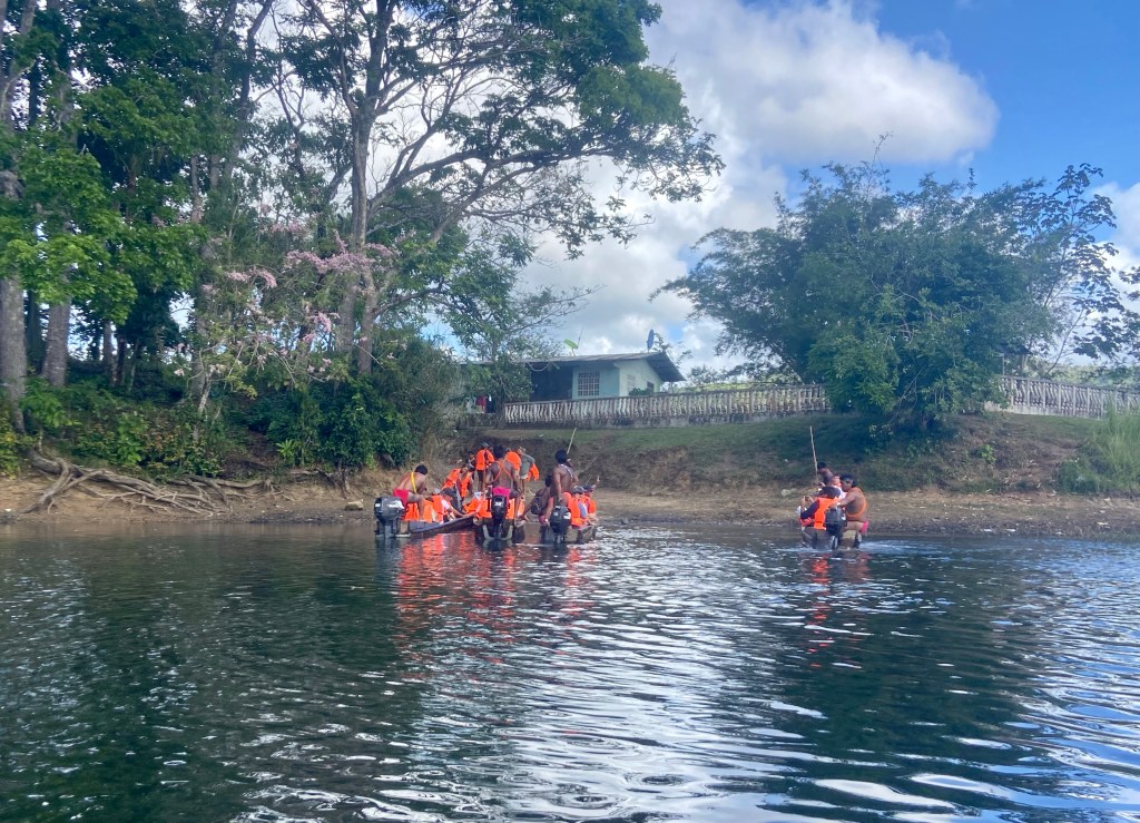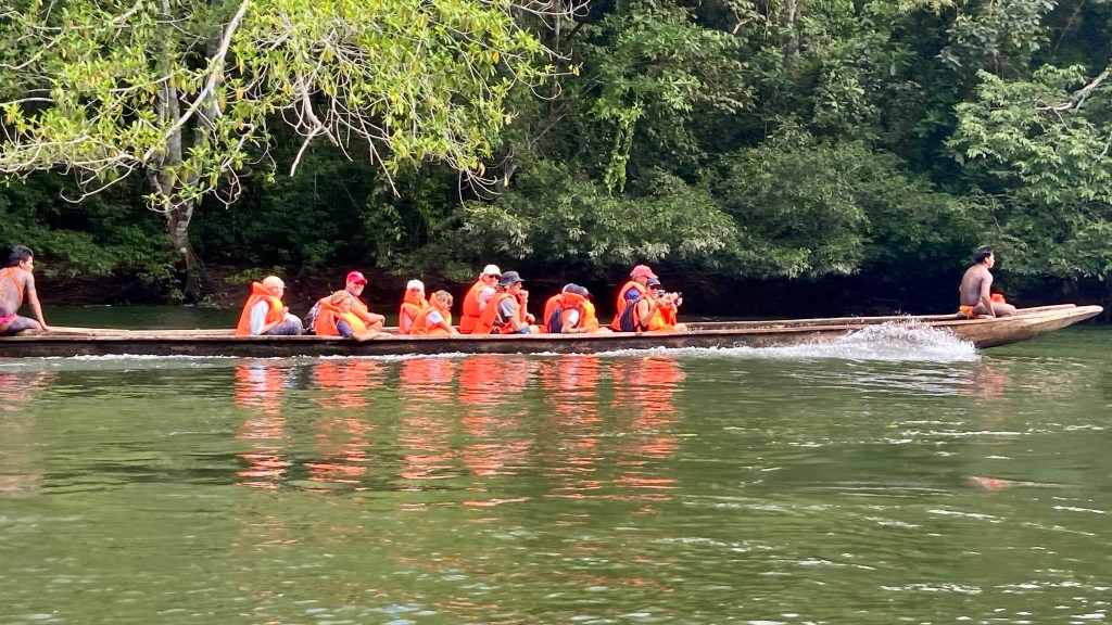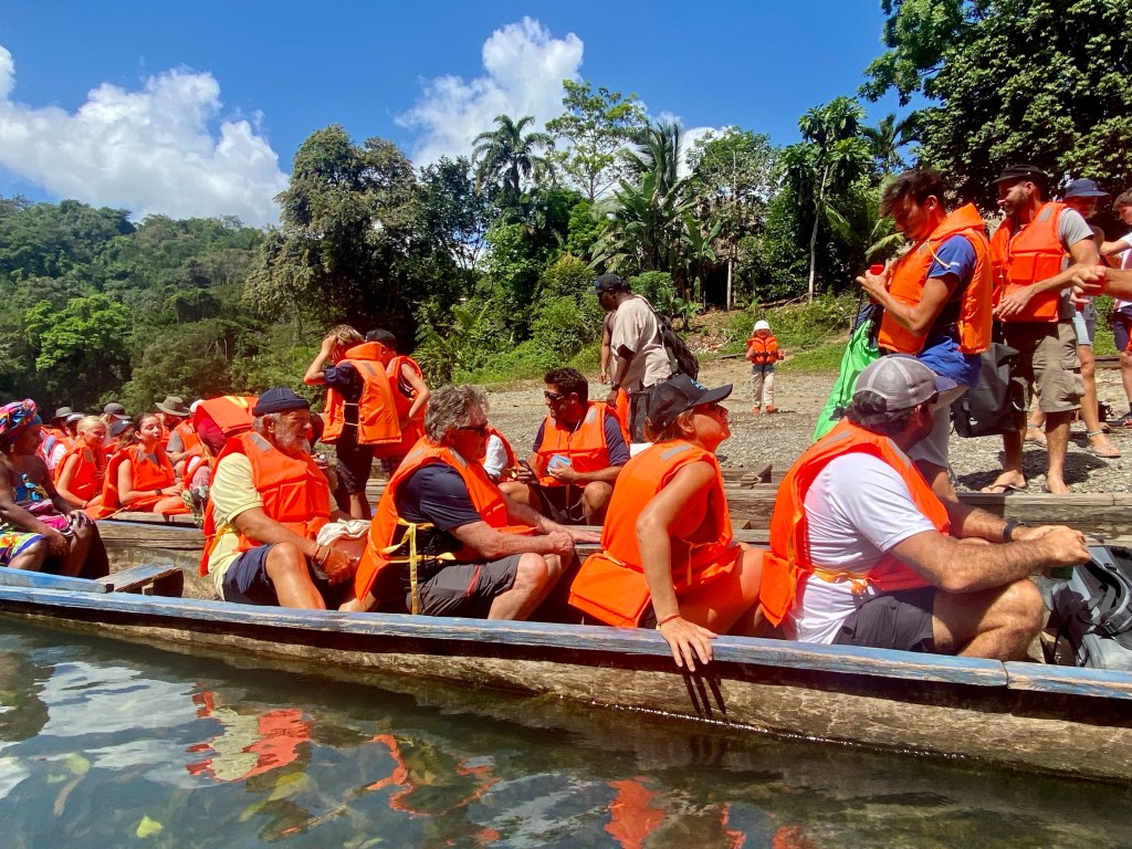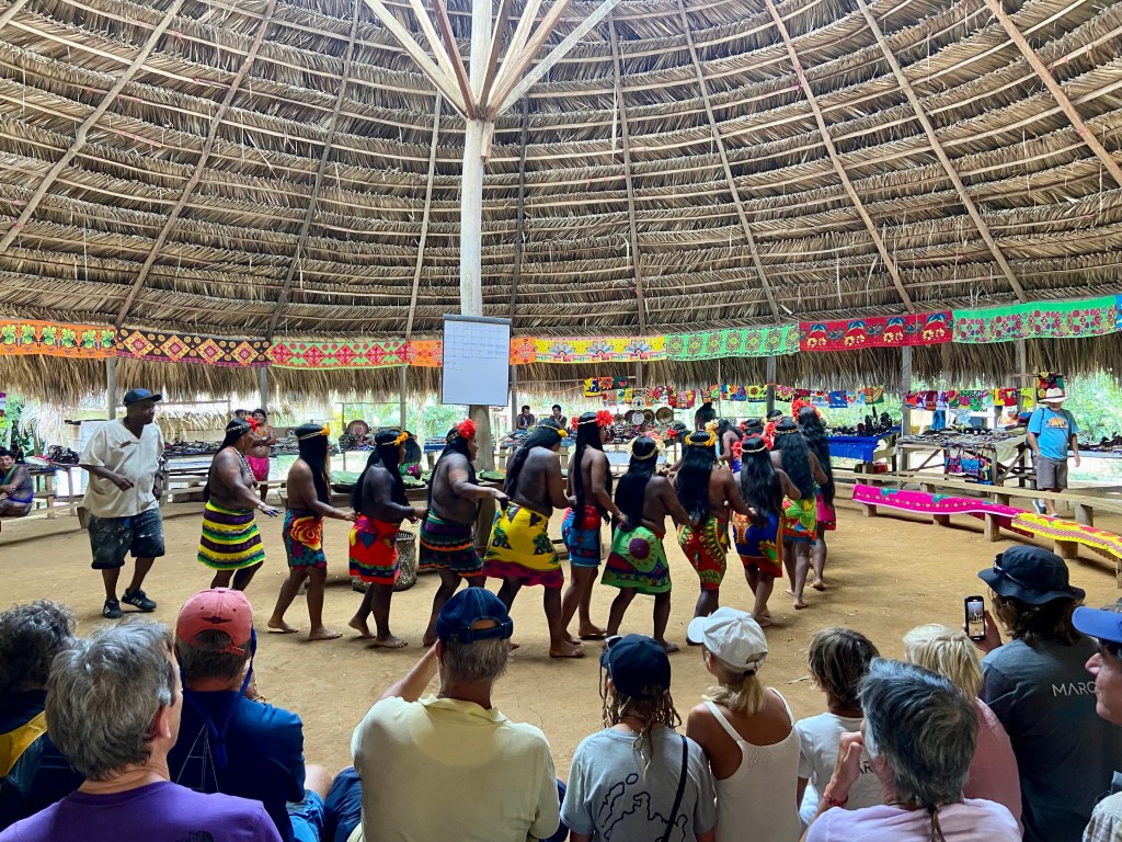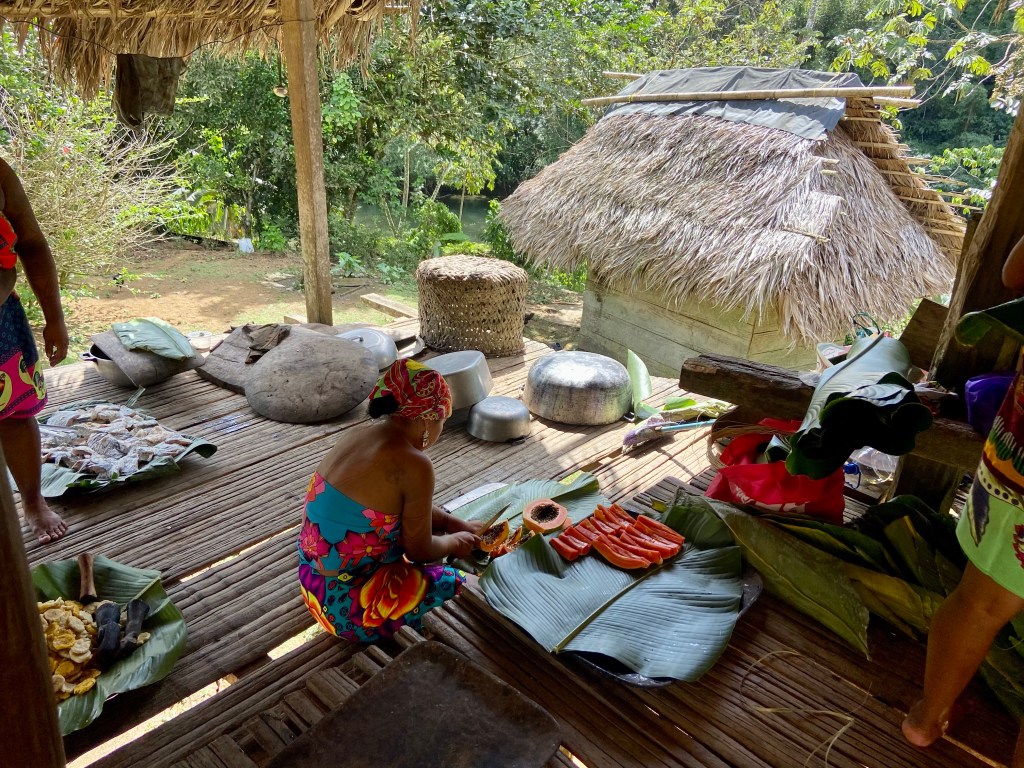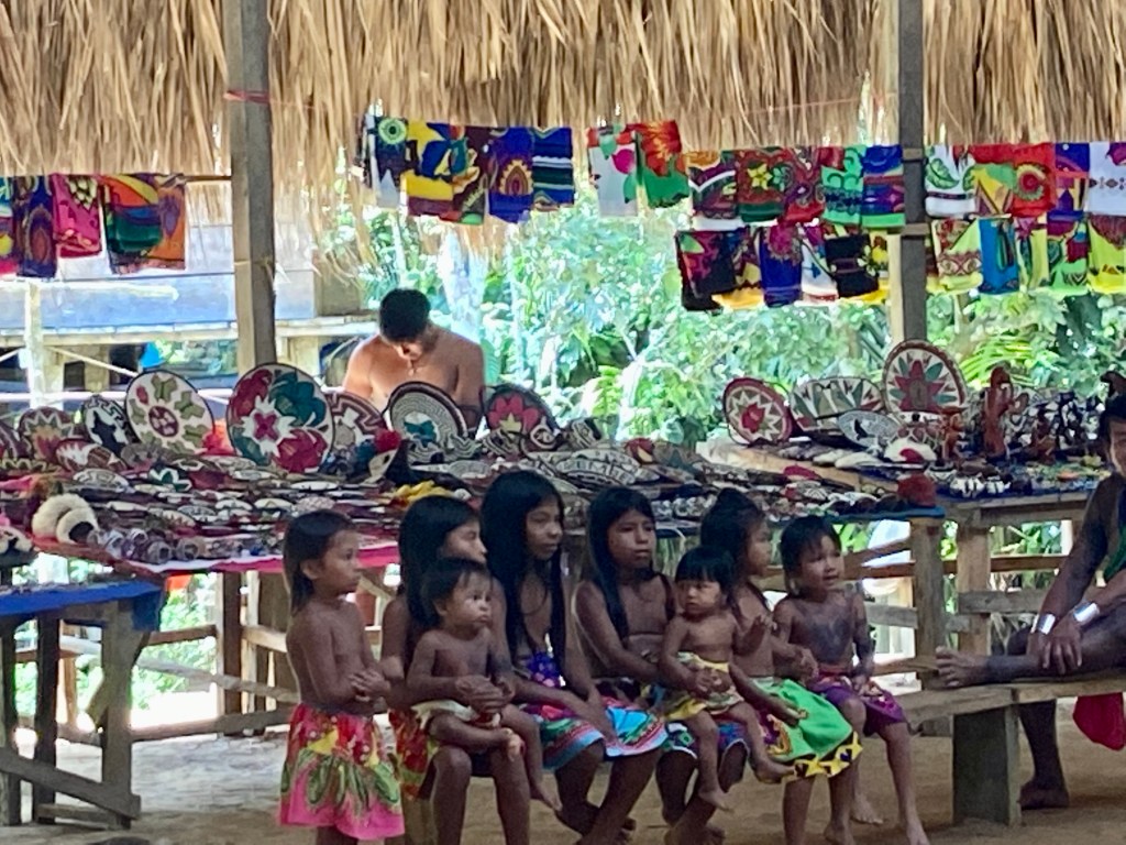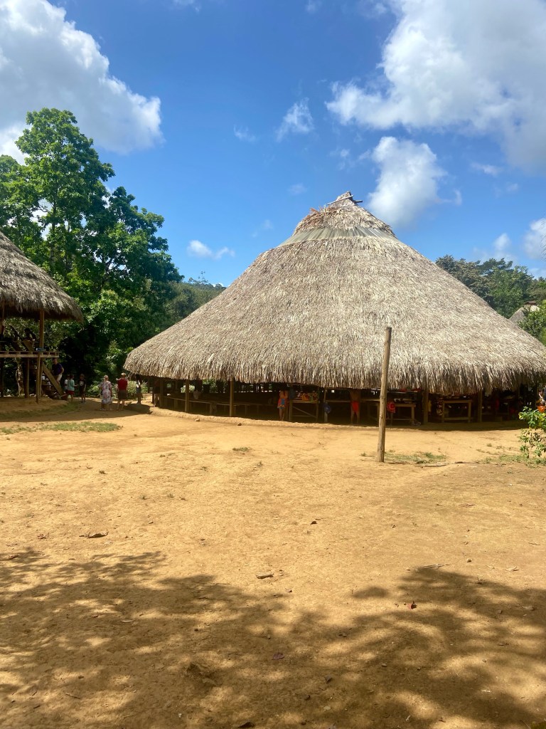 The ARC organised a guided tour to one of the natives village Embera village in Charge national park. This was a fantastic trip. First an hour in the bus then 45 min in canoe until we reached the village. They live very close to how they always have lived. Although even they are getting effected/ influenced what happens in the rest of the world. They have a school that is provided from the government up to 6 grade and after that they go to school in the nearby city. Some stay and some comes back to live in the village. In this village there was 132 people living in 40 different houses. One of there income is to sell products that they make. We bought some baskets that are made out of bamboo. They use leaf, nuts ect to colour the bamboo. We had a lovely lunch served on bamboo leafs, and some dancing. We really enjoyed our day here in the jungle.