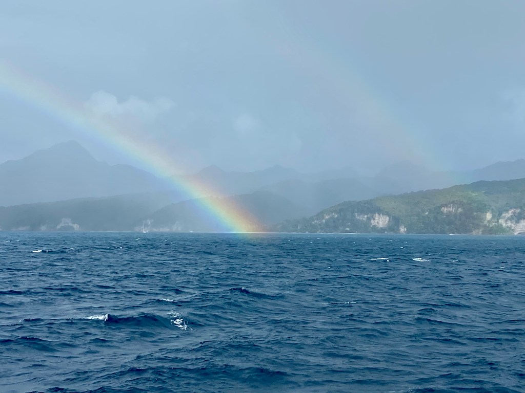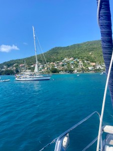 Sunday morning arrives, and we finally set off, and the best part is that we sail. Extra joyfully, we see dolphins this time, small ones jumping high out of the water. It’s about 120 nautical miles up to Guadeloupe, so it’s barely a day’s sail. The anchor went down Monday morning outside the village of Deshaies, which is the place where “Death in Paradise” is filmed. Unfortunately, we missed them by a day. They were probably somewhere else on the island. Others who had been there had seen the whole filming crew and met the new commissioner.