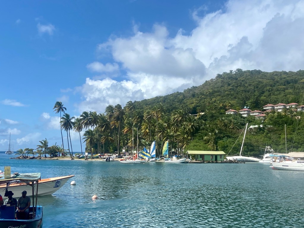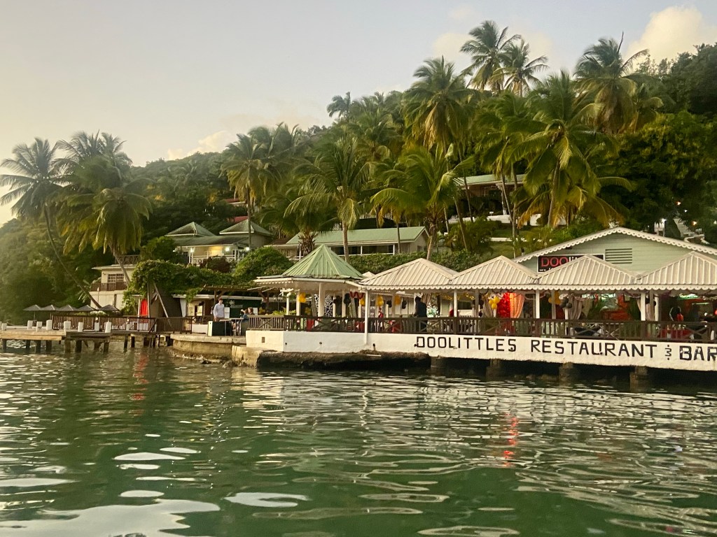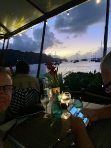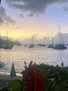Gen and Jerry came over for a sundowner and brought a Kalukela, a rum they bought on the island that we tried. It was one of the best rums I’ve tasted. We continued our evening with dinner at La Savane, a nice little restaurant by the beach. We had a fun evening, which we ended with a little walk to see some of the famous buildings from “Death in Paradise.”
