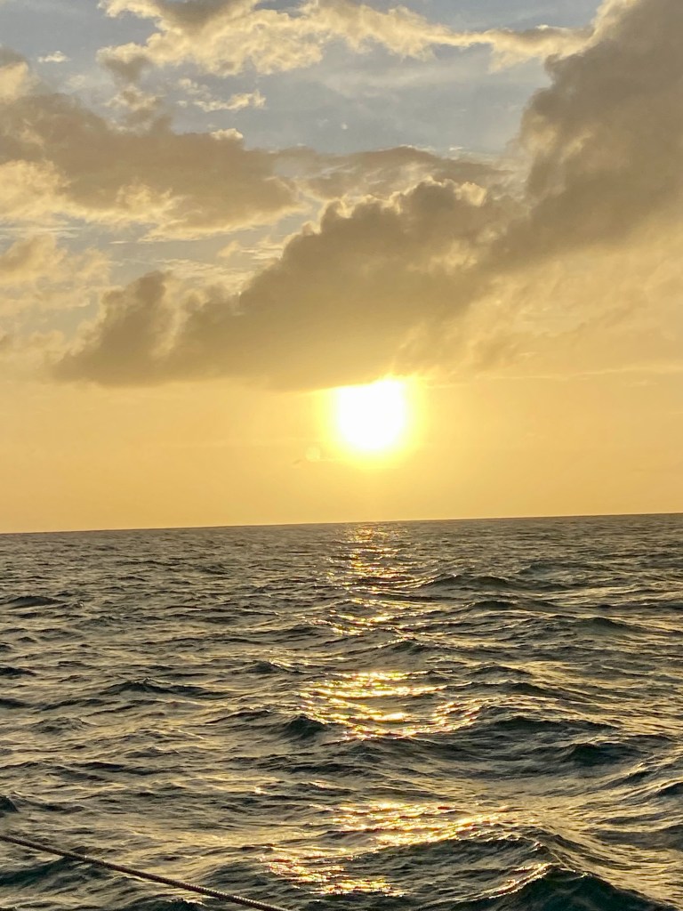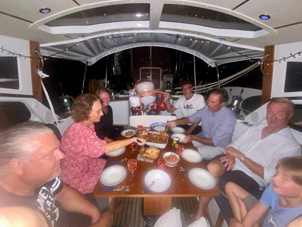 We head north! Our next stop is Martinique, where we will receive our new D1s. On the first night, we anchor and have a fantastic lunch with everyone on board Brainwave, Navilus, and Kaja, which ends with a swim in the sea and a lovely sunset.