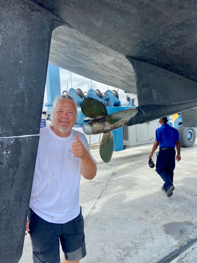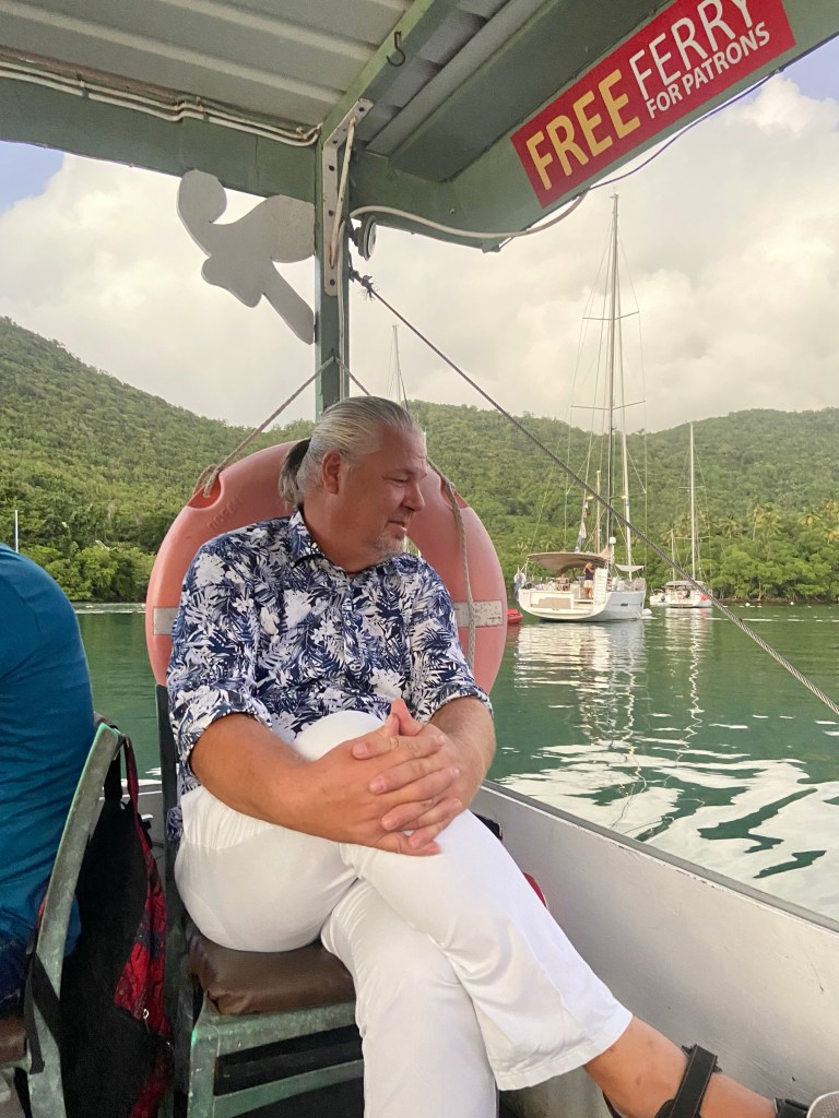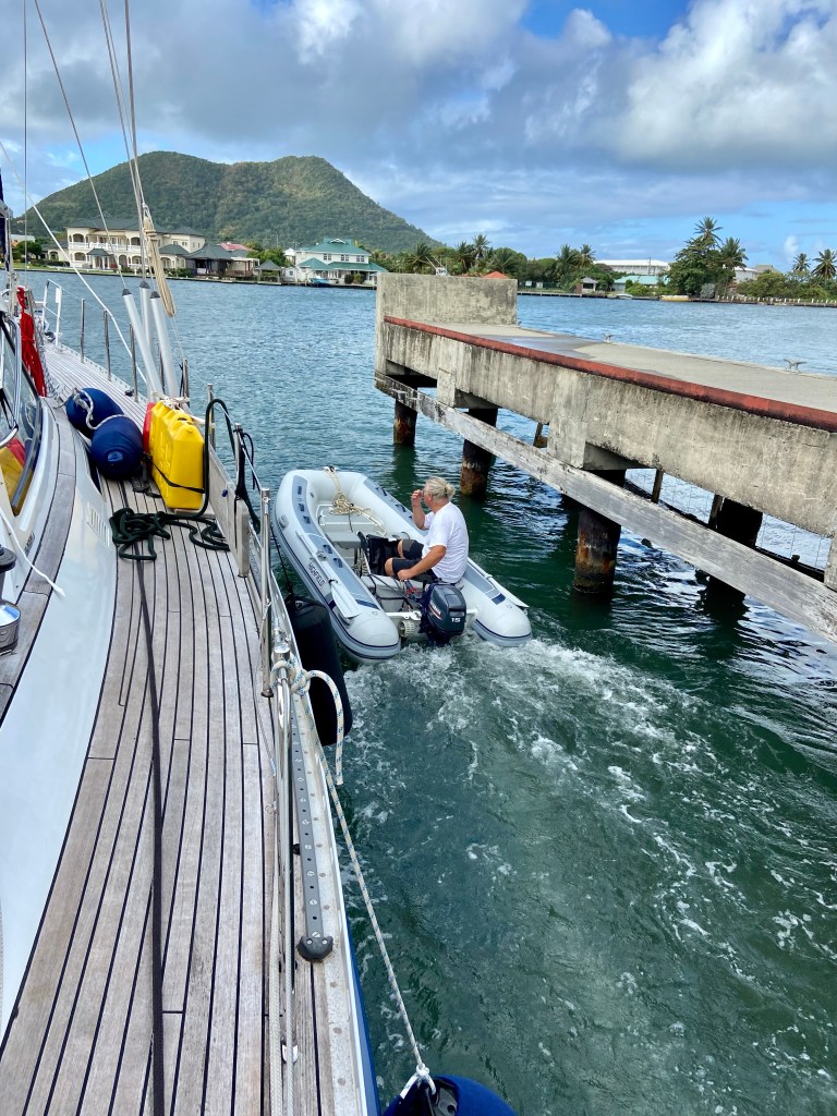 We motor into Le Marin and dock between two large motorboats. We have total shelter and are not visible from land. The next day, we have an appointment to get our D1s made. Edgar goes over with our damaged ones and is informed that they can’t handle them, but maybe on Tuesday or Wednesday, Thursday is closed. It all ended up with Edgar sitting outside on Friday at 2:30 PM waiting while they manufactured them. We installed them ourselves, and now we hope the rest of the rigging is okay. Edgar also managed to find a guy who could change the shaft packing on our water pump. He came on Tuesday and promised to return the next day. Ha ha ha, we thought, and on top of that, Thursday was a public holiday, so maybe he could come on Friday. On Friday, Edgar tries to contact the mechanic but with no luck, so he asks the dock guy to call the mechanic, who also does not get a response. But shortly after, the mechanic contacts him and wants to come on Monday. Eventually, Edgar manages to convince him to come on Saturday. Which he did, though a little later than promised. The whole job took 30 minutes, so one wonders why it took so long. The harbor office was closed, which meant we couldn’t check out and leave Martinique. In hindsight, we could have just anchored at the beach and enjoyed swimming and sunbathing, especially since it was unbearably hot. On the positive side, I walked quite a bit, and we had good food every day without me needing to cook it. Some stops don’t always go as planned, especially when things need to be fixed on the boat by others. Our patience has truly been tested and has improved more and more, with Edgar improving more than I.