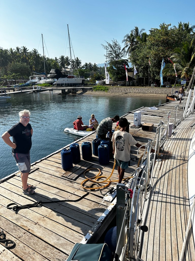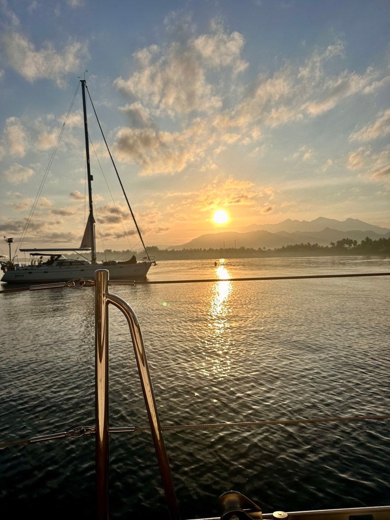 We can see land, it’s only 22 Nm left until we are in a buoy. To be on the buoy before the sun is down we turn on the engine. We pass the finish line at 18.44 Lombok time. Lots of motoring hours so we will need around 400l diesel. That will be tomorrows work tonight we are just happy to lay on a buoy and to get a hole night sleep in our own bed and not on the sofa in the salon.
