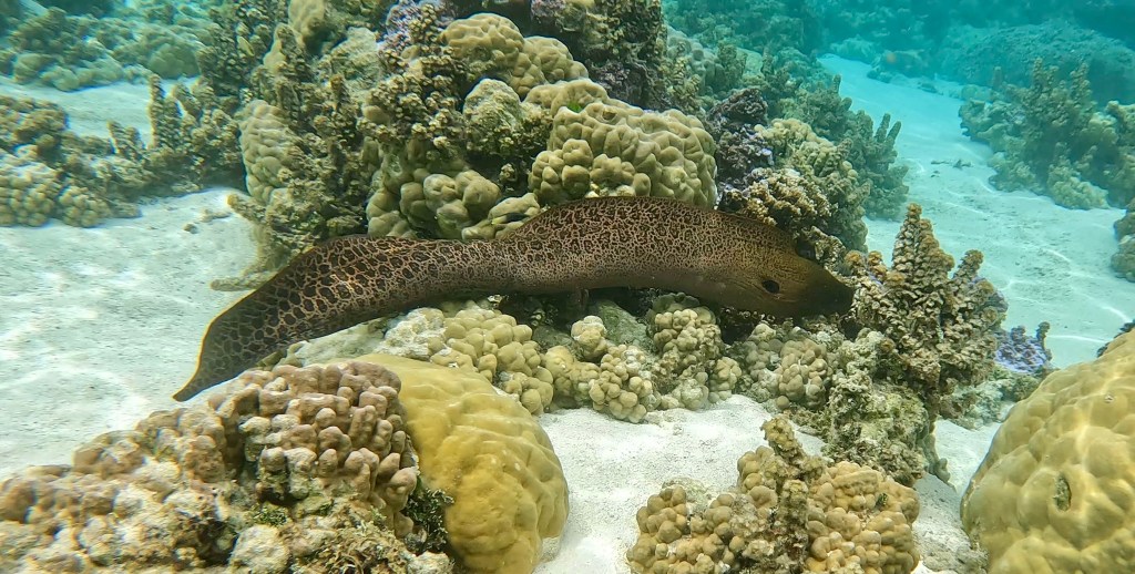 Before we leave the next day we have to snorkel one more time. This time I see black tip sharks and to giant morays. Lots of other nice fishes and corals as well.