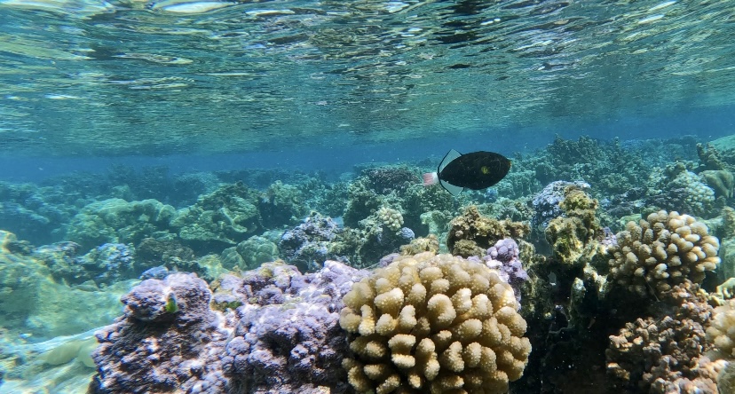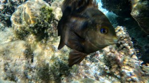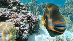 We take the dinghy in to the coral garden. It is a opening between two Islands so the water is quite flowing. Very lovely snorkelling place. Here I meet again some curious fishes.