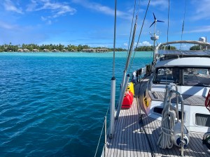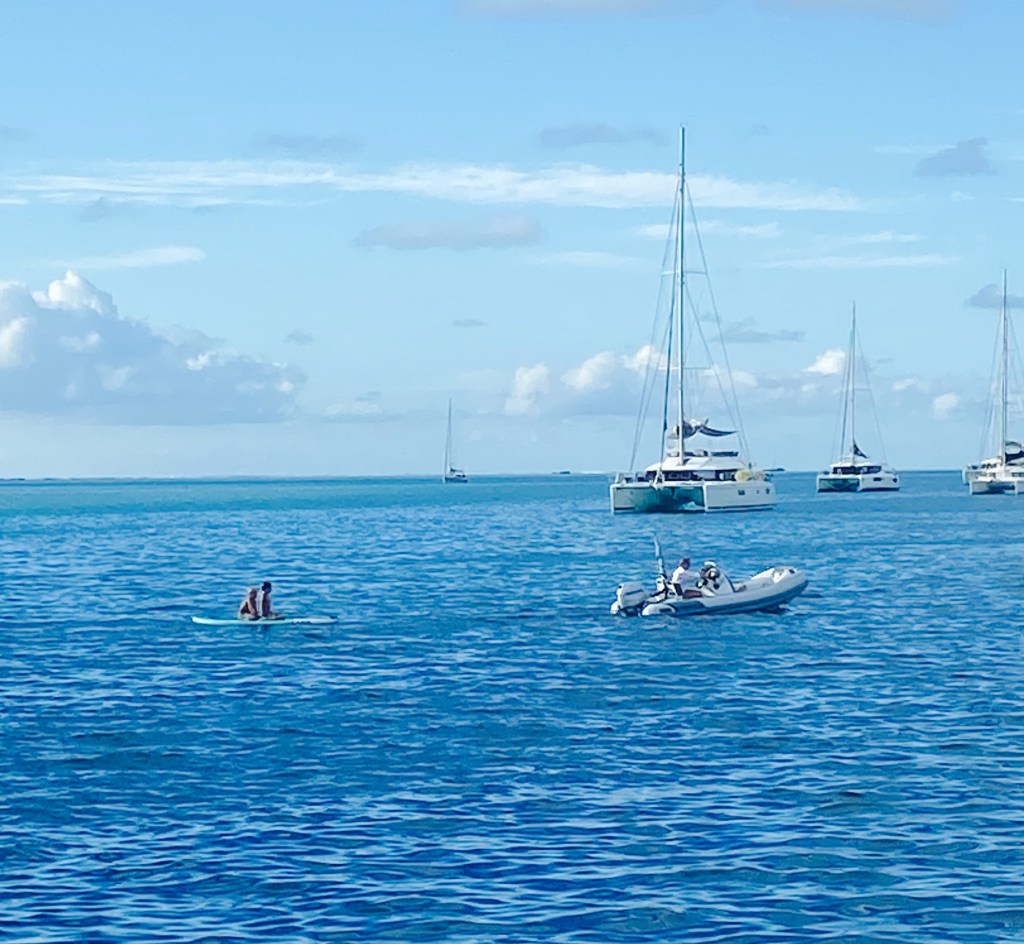 Time to leave this beautiful place and to Bora Bora. We have a bouy at Bora Bora Yatch Club that is located 10 min drive with the dinghy to the town. This is also the place where we will meet up the other boats before we do the 5 leg on our sailing with World Arc. Here they come out to you so we can pay for the bouy. Great service! They also comes and pick up our garbage.