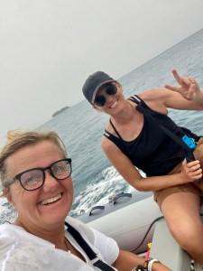We had a great last evening with Eva and in the morning after we drove her in to town in her new hat she bought yesterday. From town there is a boat transfer to the airport.