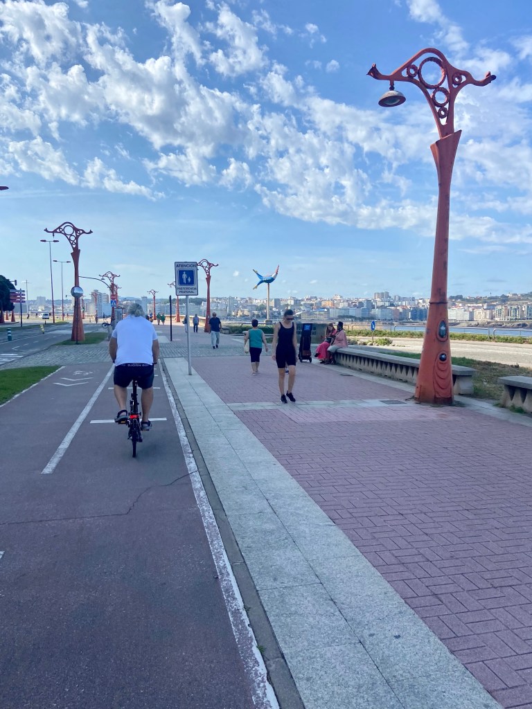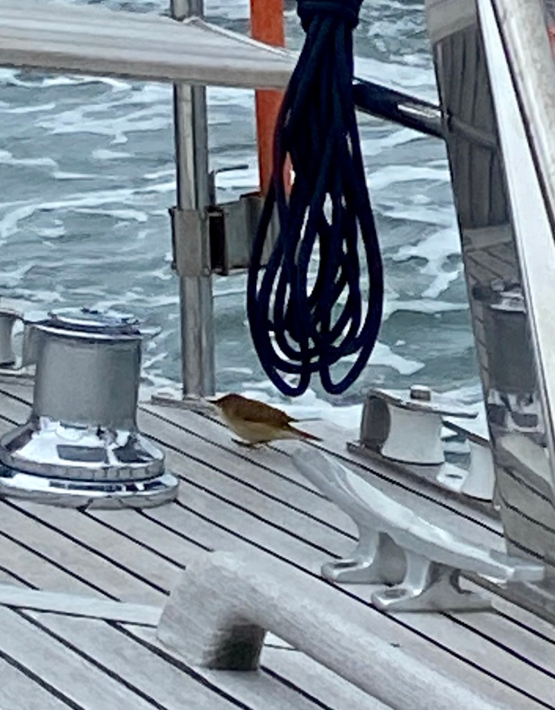 We woke up at 6 to cast off but is was to dark and a bit foggy so we waited in hop of the sun to go up soon. We gave up and left the harbour just befor 7. Still dark but good that there are lighthouses to help us navigate . The hole day was very foggy inland but we had clear sight. After half way we got company by a little bird who moved around on the boat and stayed with us all the way to ACoruna. Only 3 nm we spotted orcas… the pulse went up when we saw them slowly coming behind us but they didn’t come our way…..It was very nice to approach ACoruna and dock at the jetty.