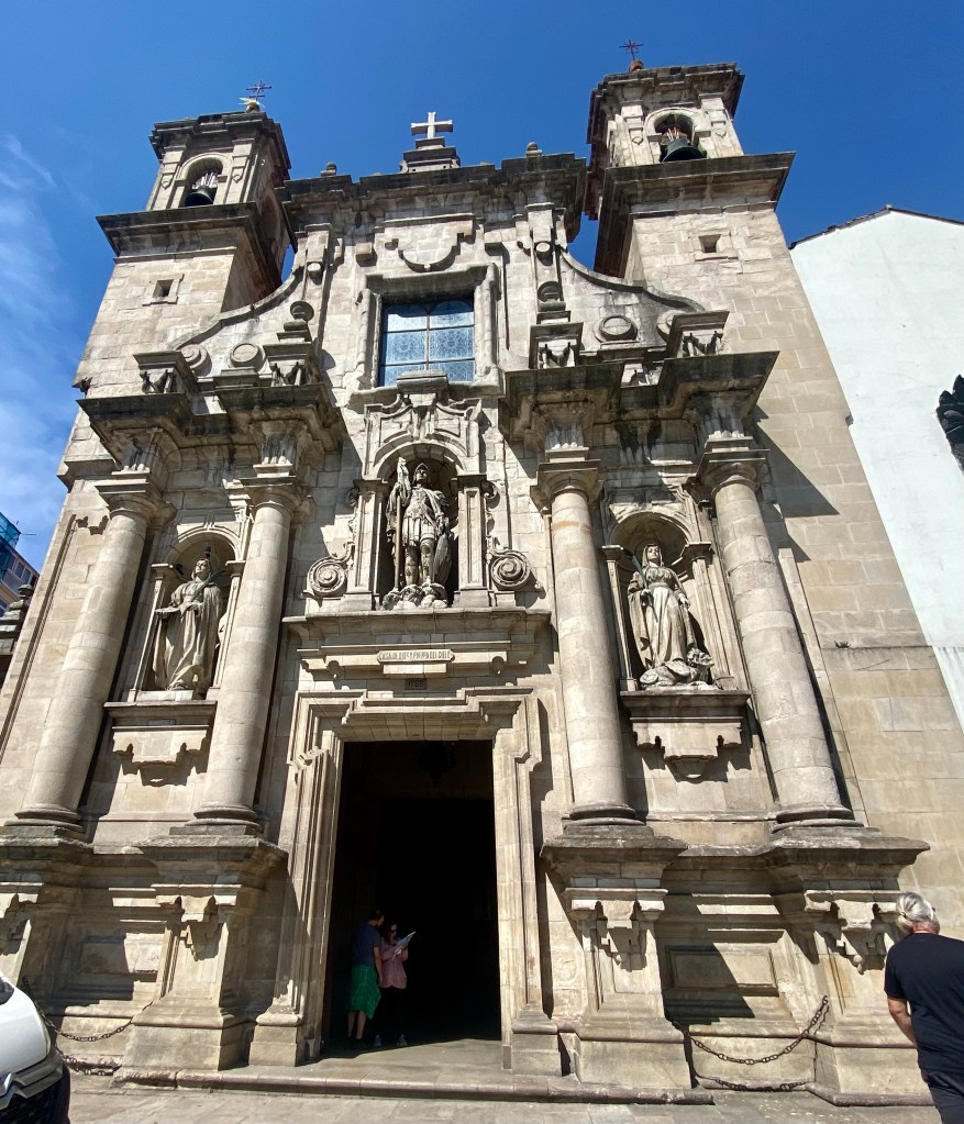 Next day we enjoy the beach for an hour before we had to go back to the boat due to the strong current. We hadn’t put on the engine so it was heavy to row back to the boat. The wind was getting stronger and also the waves so we decided to go to Vigo and explore the city and do a tour to Santiago de Compostela. The way in Ria de Vigo was very nice and sunny. We spotted lots of sailing boats that had a competition.Just when we had gotten in to the Ria we hear on the VHF that there are Orcas attacking a boat bit north of Illa Ons. Later we get the good news that the crew and the boat is okay and this time no damage on the boat. It had only been in the water for three weeks after been attacked by orcas and needed to be repaired. First time they hit the rudder so hard that it bent and the couldn’t steer the boat. We met them later in Porto.