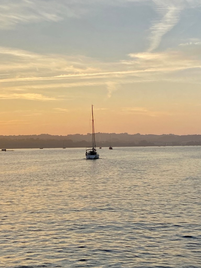 A tour in to town to do some grocery shopping ended up with new sandals as well . Didn’t buy these when I saw them in Mallorca so now was the time and I was not the only one buying sandals. After lunch it was time to leave and when we took up the anchor the chain was filled with “green salad” so it took a little wile to clean the worst to get it up. Right and enough wind made us all happy that we finally could sail. Passing by lots of fish and shellfish farms some of them very close to the shore. Which a bit destroys the view and makes it harder to anchor . Instead of anchoring we decided to go in to Porto Villagarcia. We ended up having a nice evening over at Christophes boat Currier Sur.