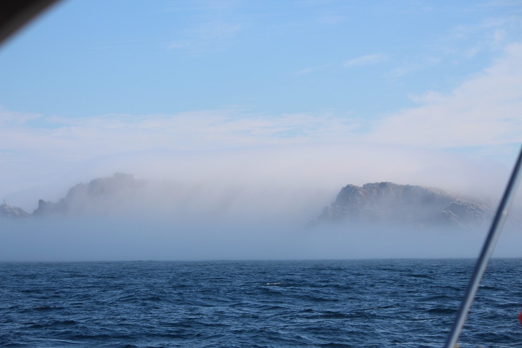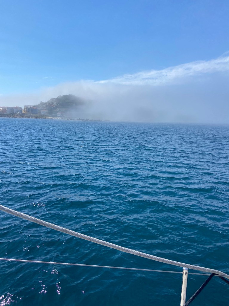 Plan changed. We leave Muxia in the morning and sail in a convoy down to Ria de Muros. The fog was very intense when we woke up and kept like that for almost the hole day. Our New sailing friends Zelda, Life@Sea, Morning Glory and Currier Sud are there in the front somewhere. You have to be very close to see each other.